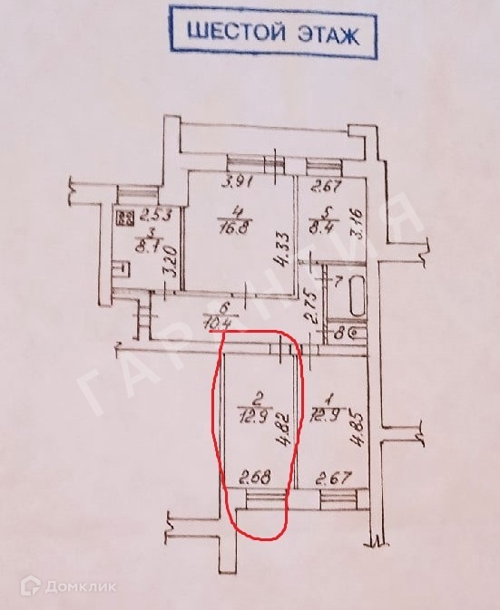 В продаже комната в четырехкомнатной квартире, площадь комнаты 12,9 кв.м, общая площадь доли 22,02 кв.м. Возможна совместная продажа 1/2 этой квартиры.