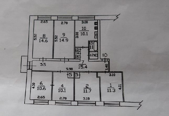 В квартире 5 комнат. Требуется ремонт.