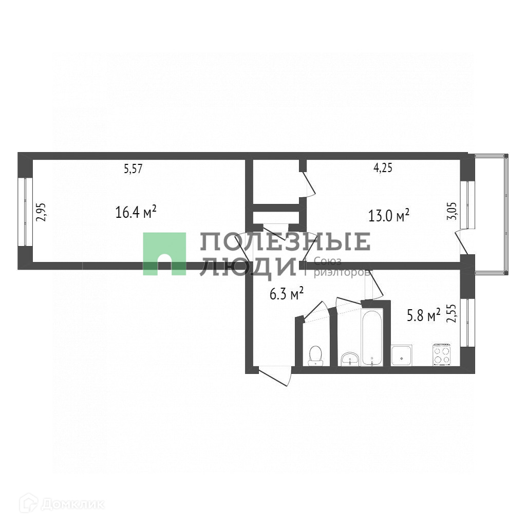 Общая площадь 48.6 м2