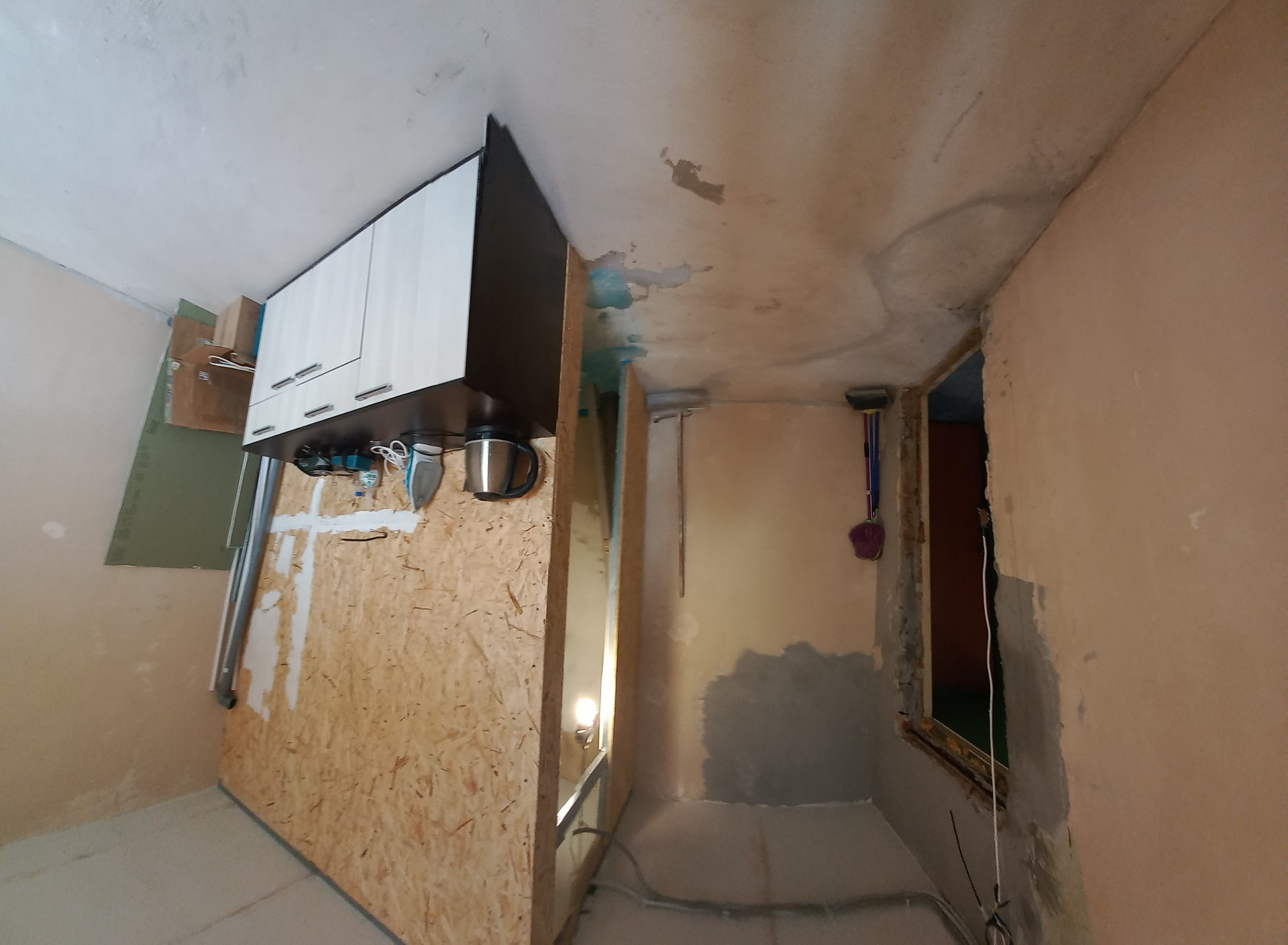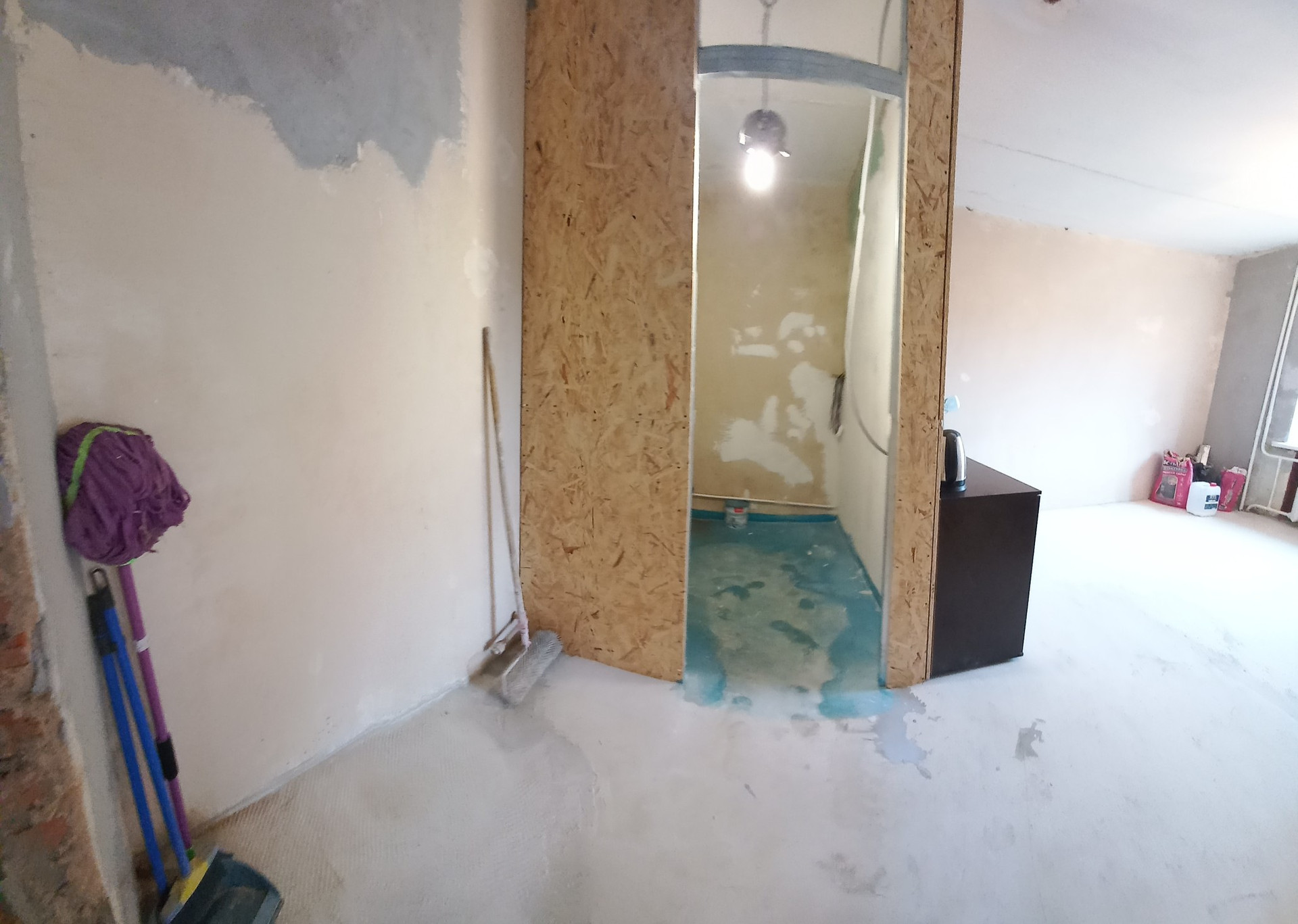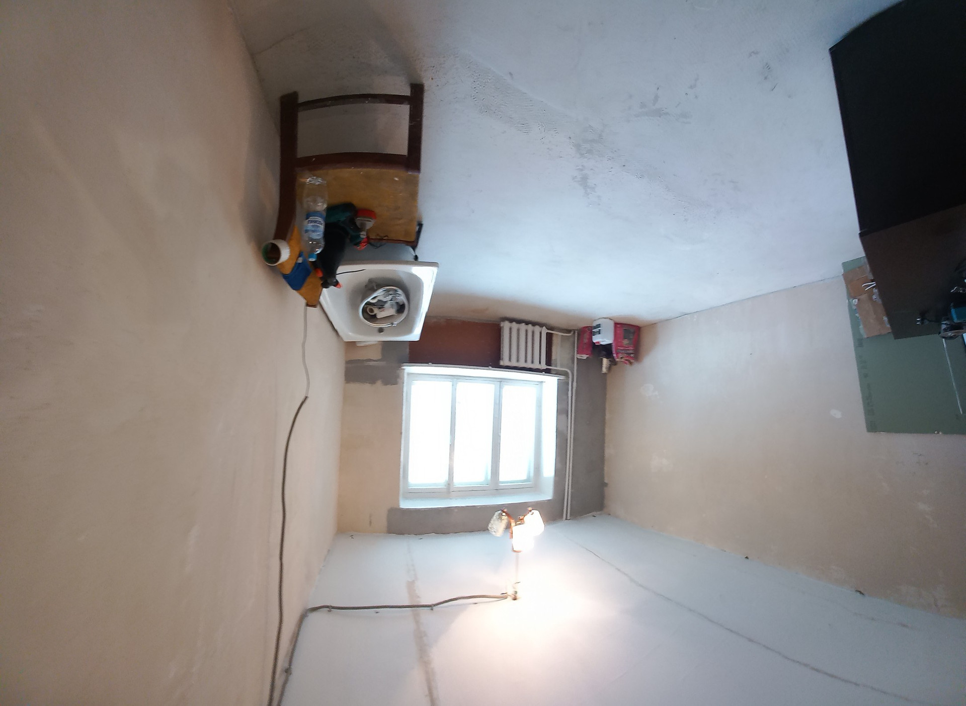 4) В комнате стены выравнены  , зашпаклеваны , подготовлены под поклейку.  ( Обои и клей куплены )