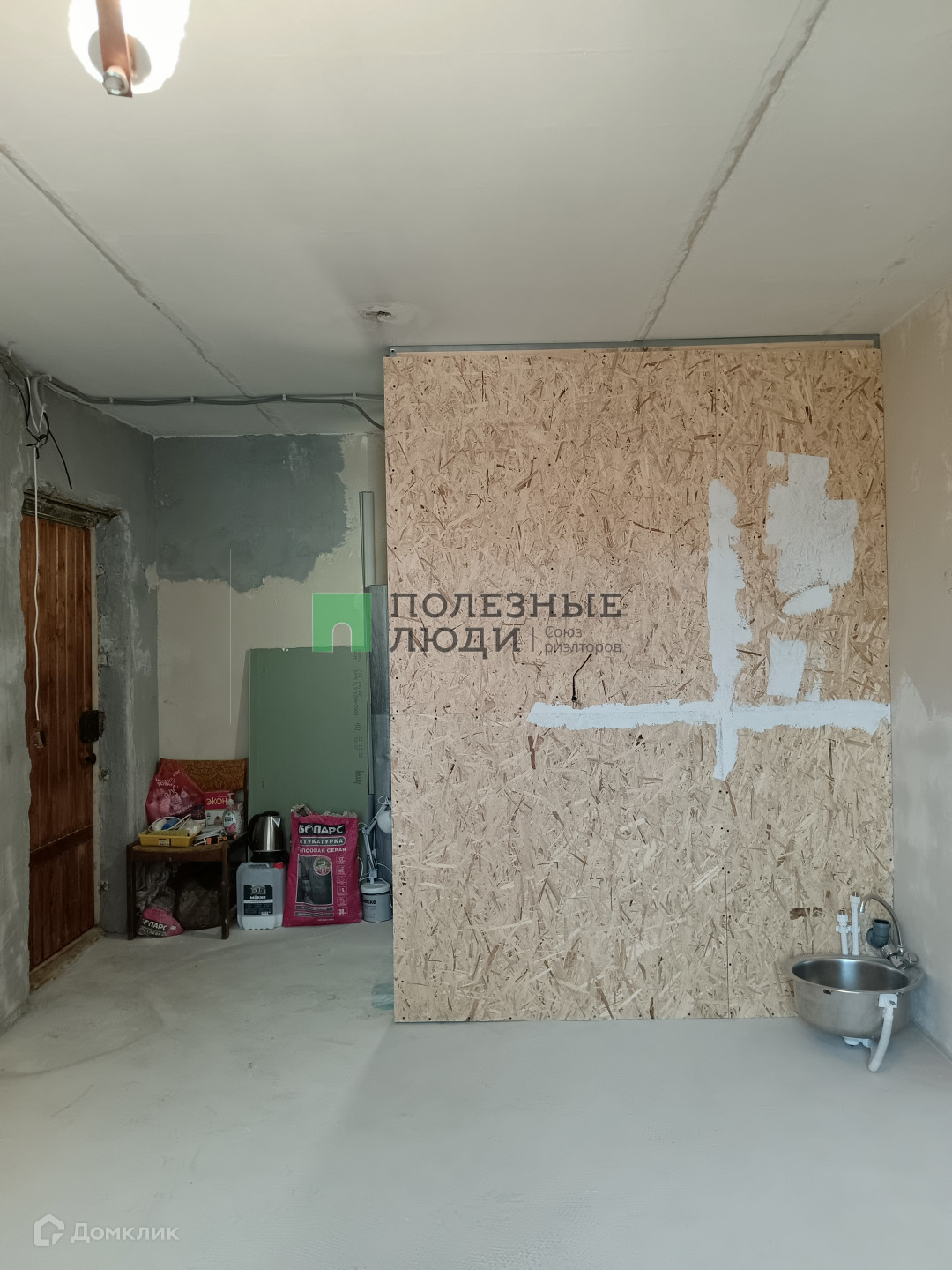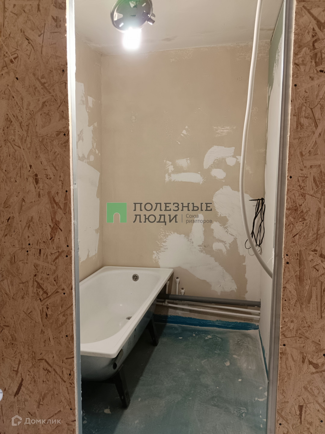 В комнате сделано отдельное помещение под ВАННУЮ комнату, выведены коммуникации (канализация на ванну, кухню и стиральную машину) , новая ванна, есть возможность установить унитаз. Проведена горячая и холодная вода.