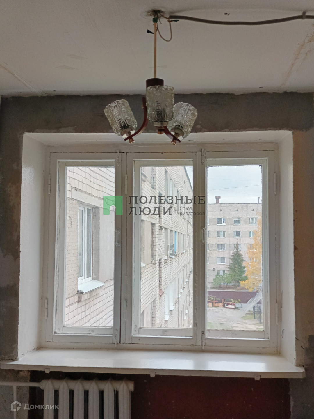 Окно и батарея выкрашены в чисто белый цвет. Окно деревянное - экологически чистый материал, выходит во двор дома вдали от шума.