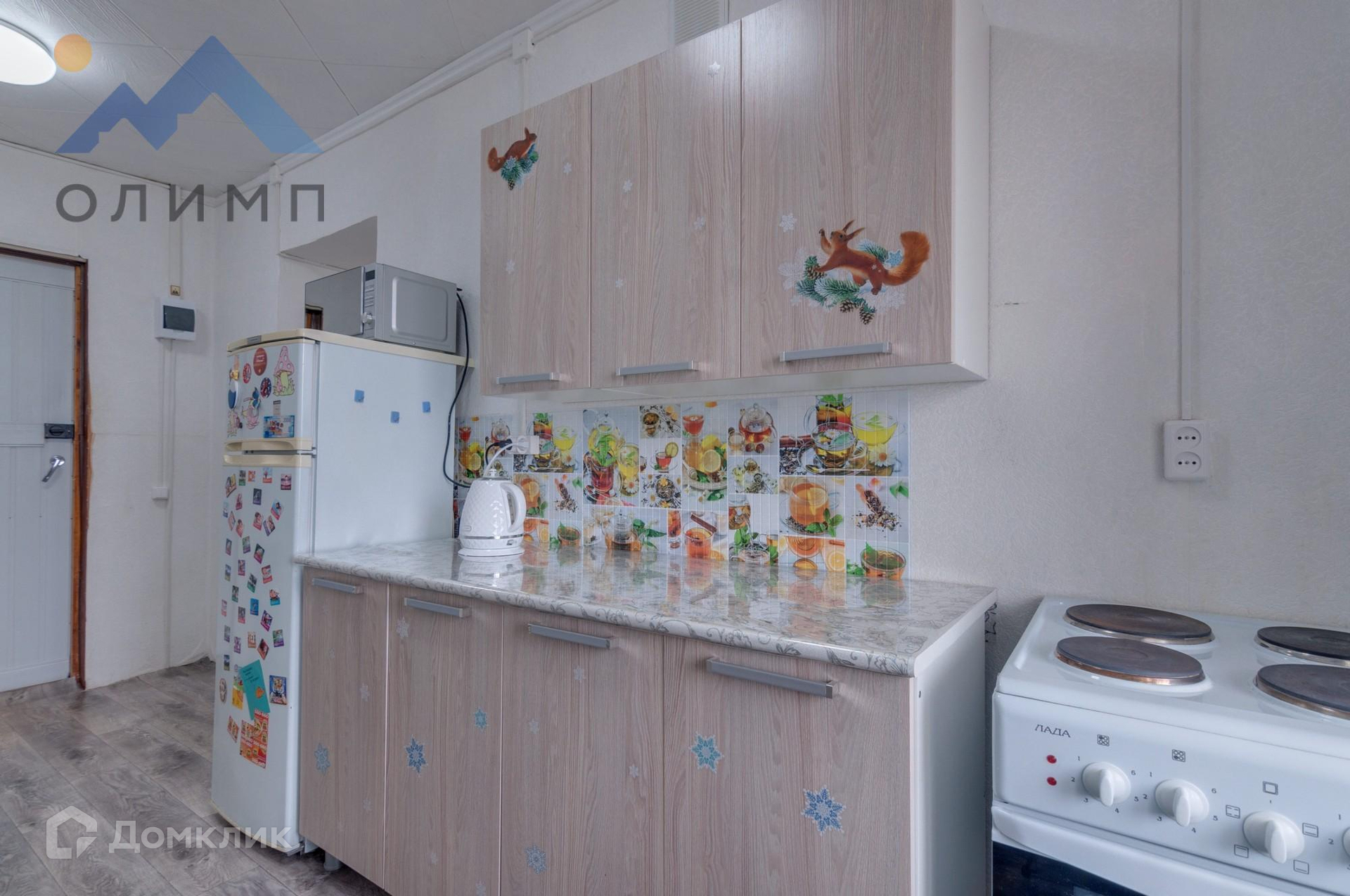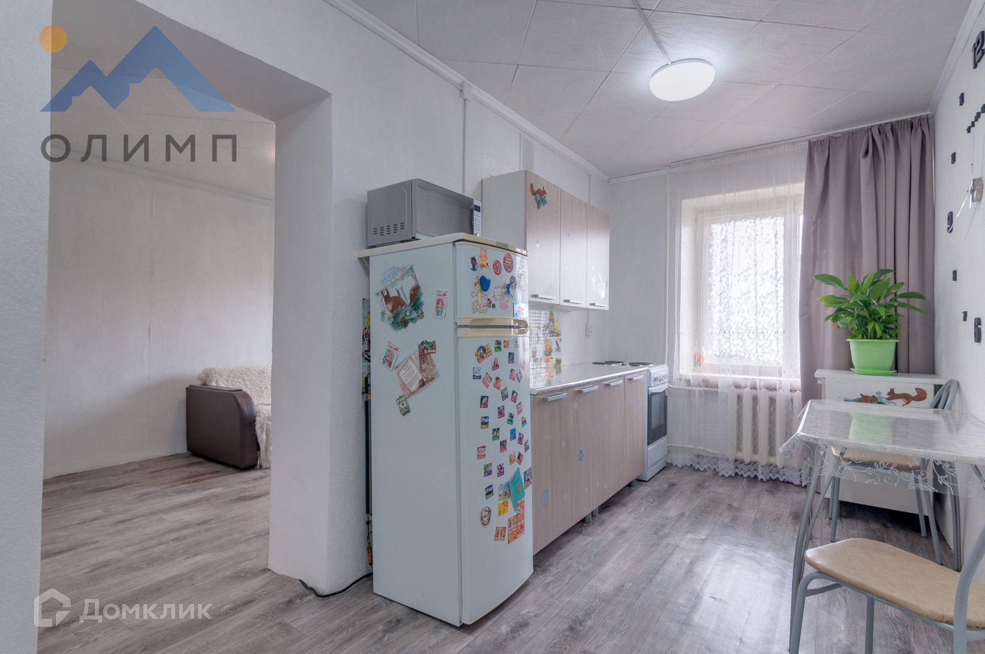 Удобная планировка, где комната отделена от кухни перегородкой.