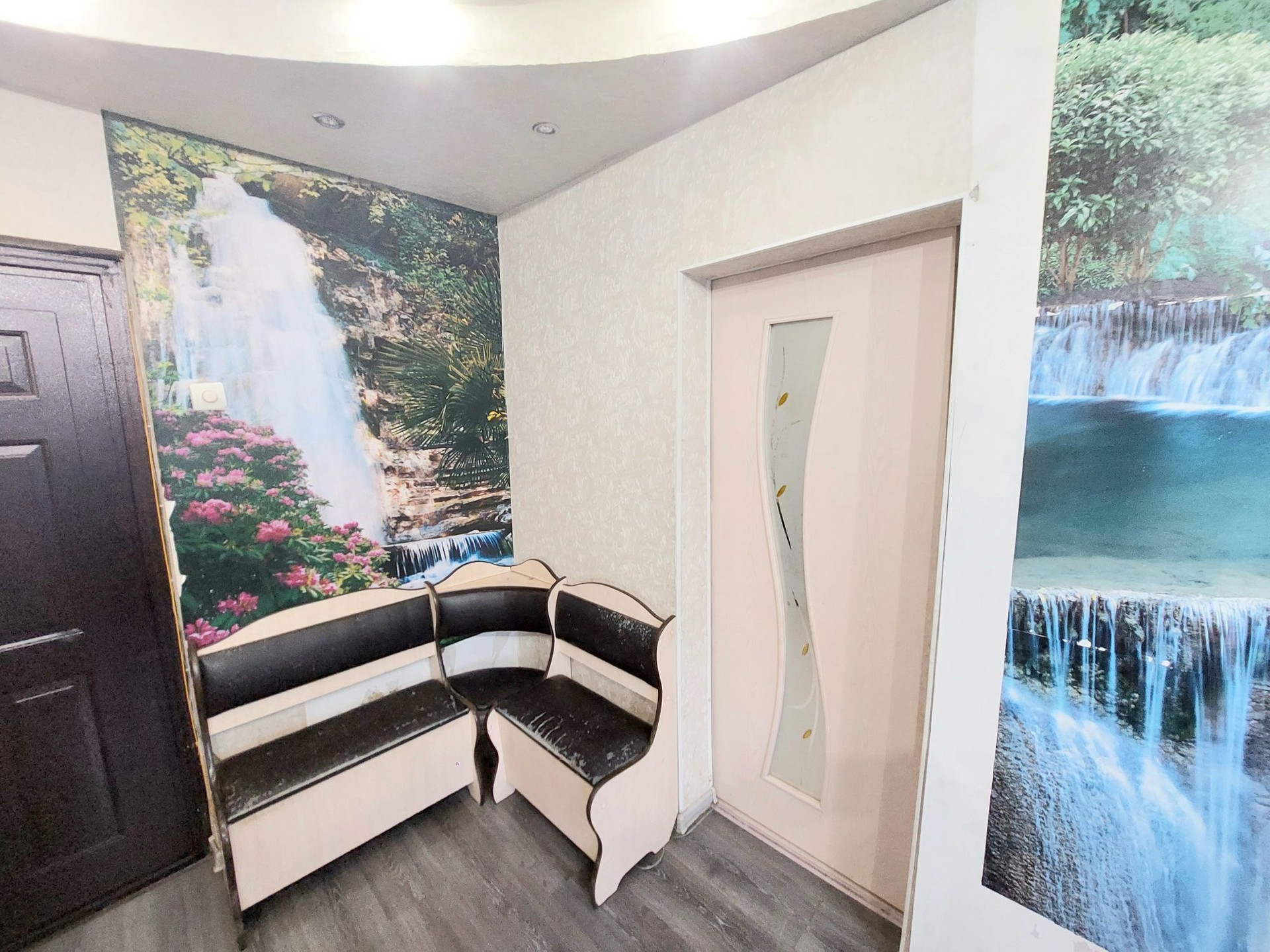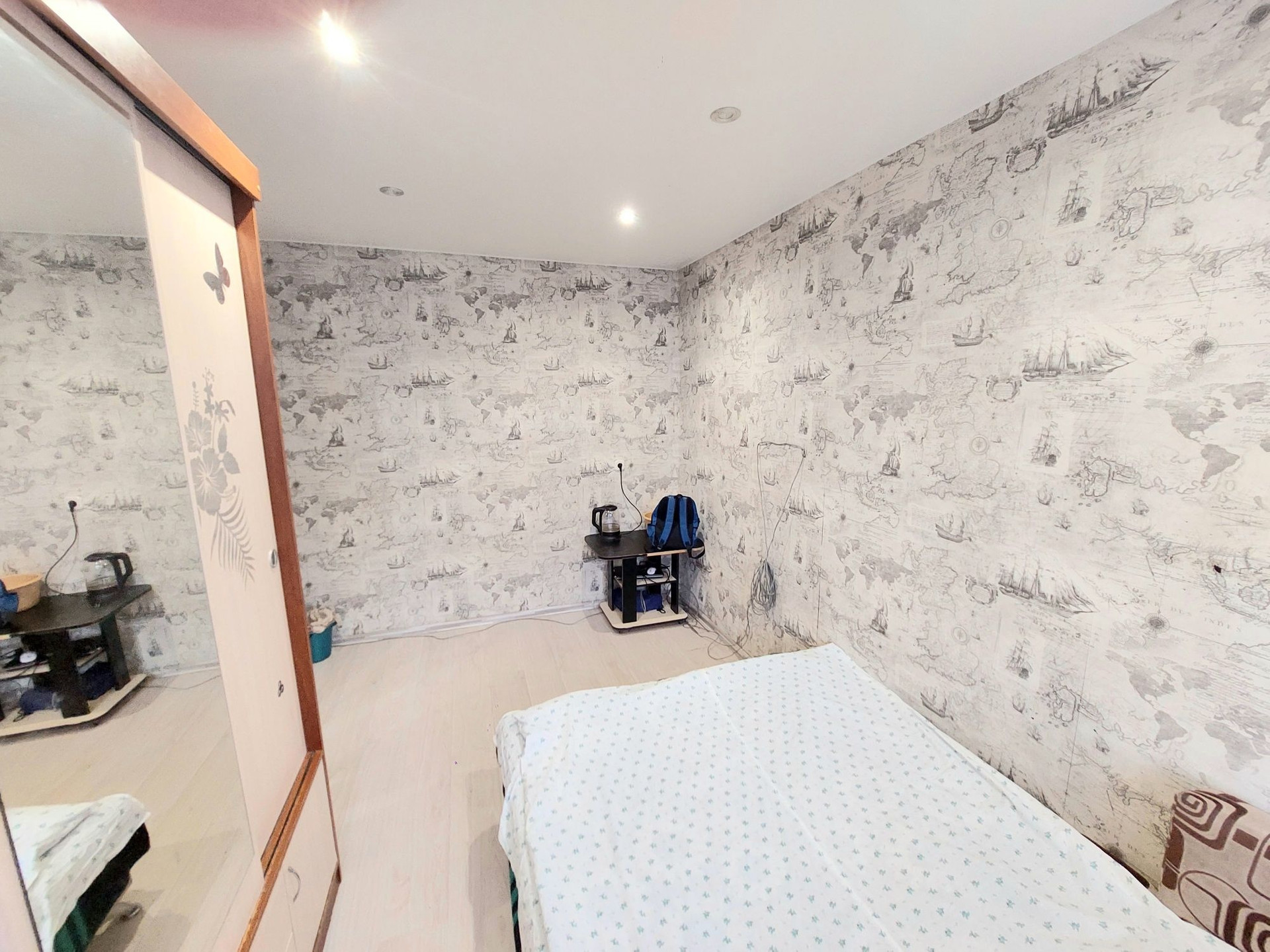 В квартире сделан ремонт, окна пластиковые, натяжные потолки с точечным многоуровневым освещением.