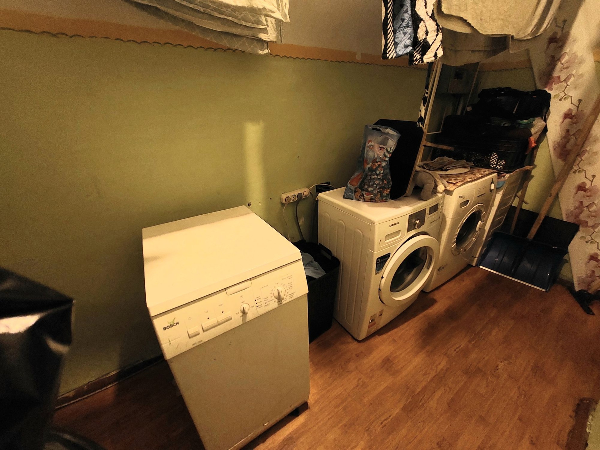Диван, шкаф-купе в комнате, кухонный диван, мебель нс кухне, холодильник( требует ремонта), стиральная машина и шкаф в прихожей.