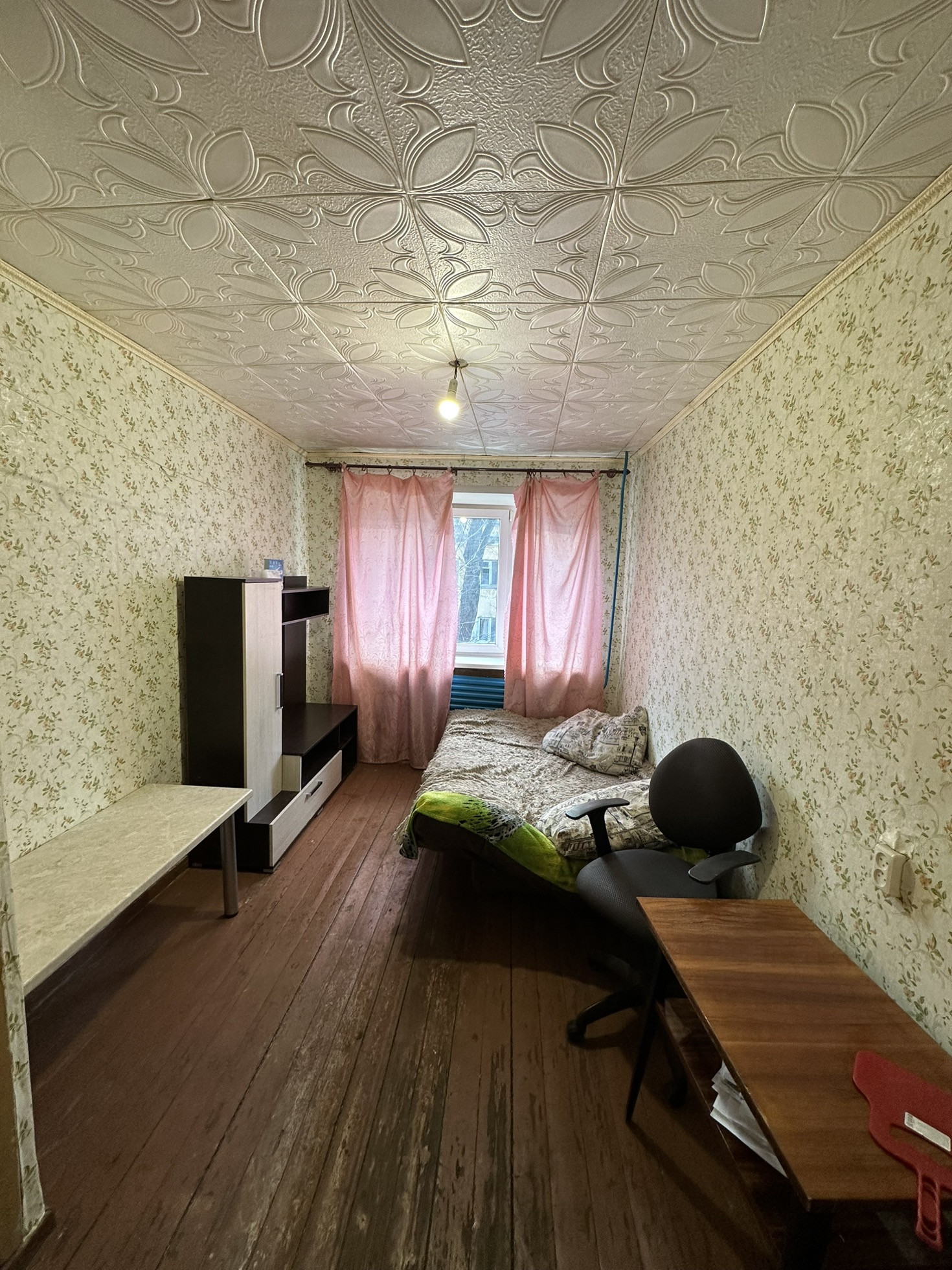 Сама комната продаётся с мебелью, в комнате установлено новое окно пластиковое, хорошая дверь. Комната не сдавалась, покупалась для проживания, продаётся в связи с переездом.