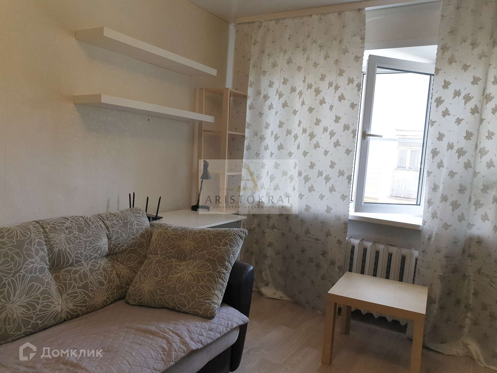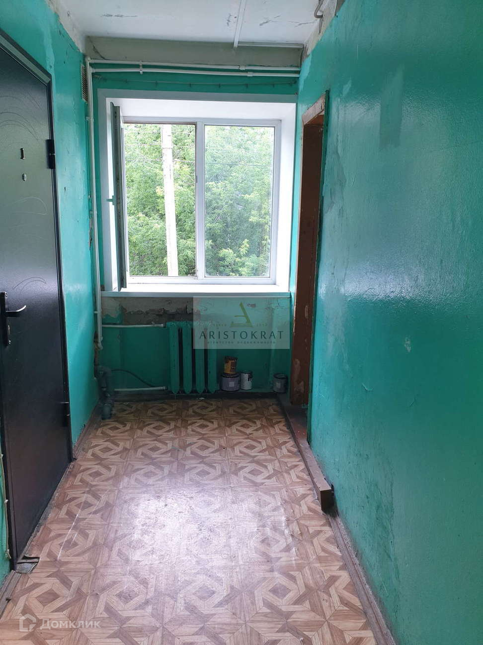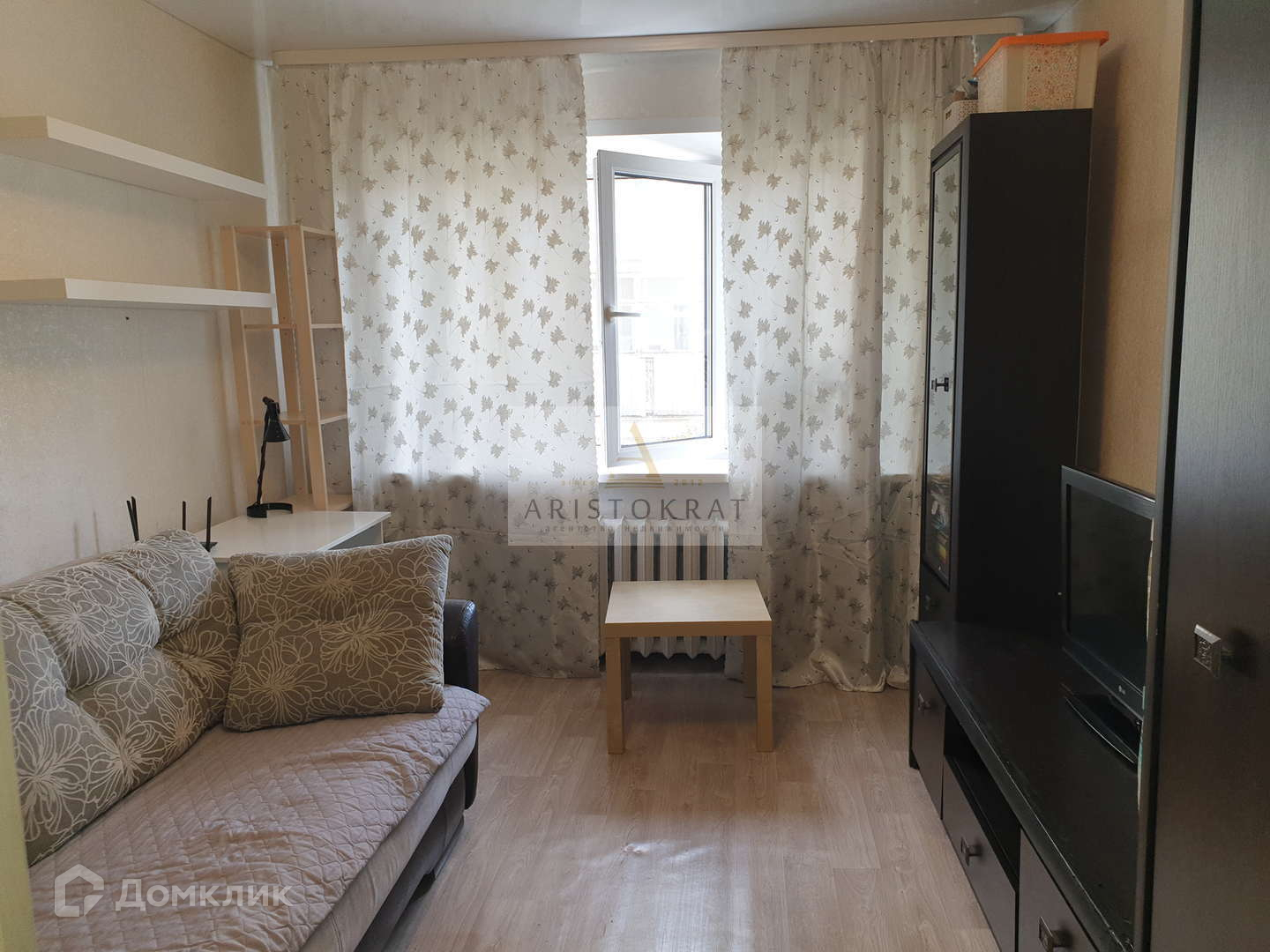 В комнате сделан хороший косметический ремонт, на стенах поклеены обои. на полу линолеум.