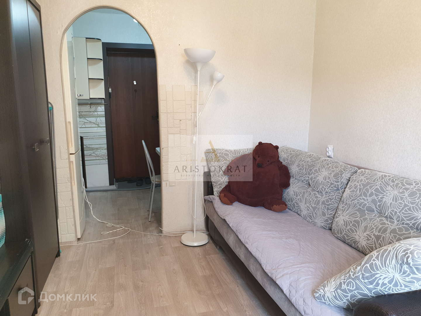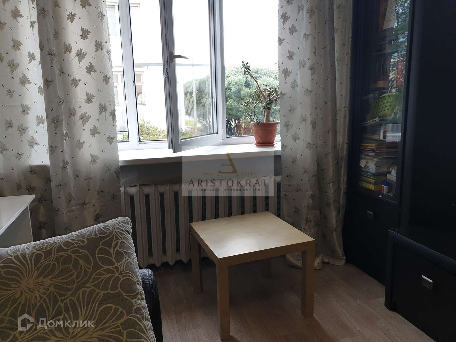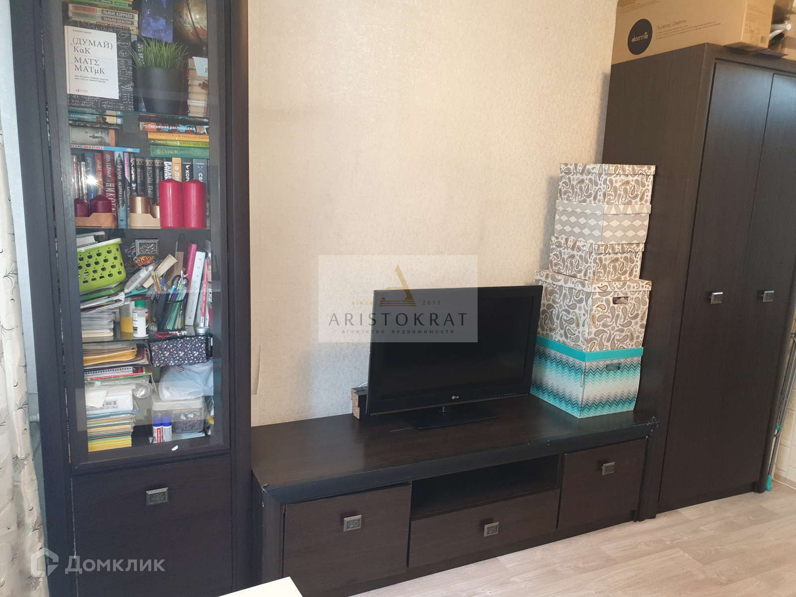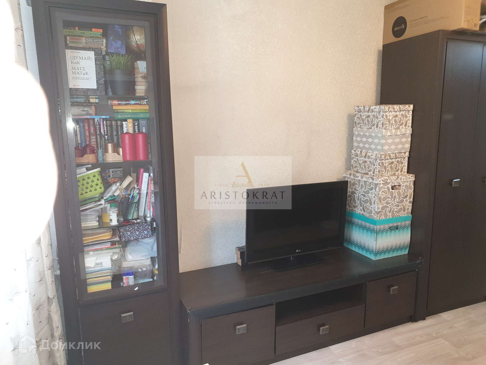 В комнате сделан хороший косметический ремонт, на стенах поклеены обои. на полу линолеум.