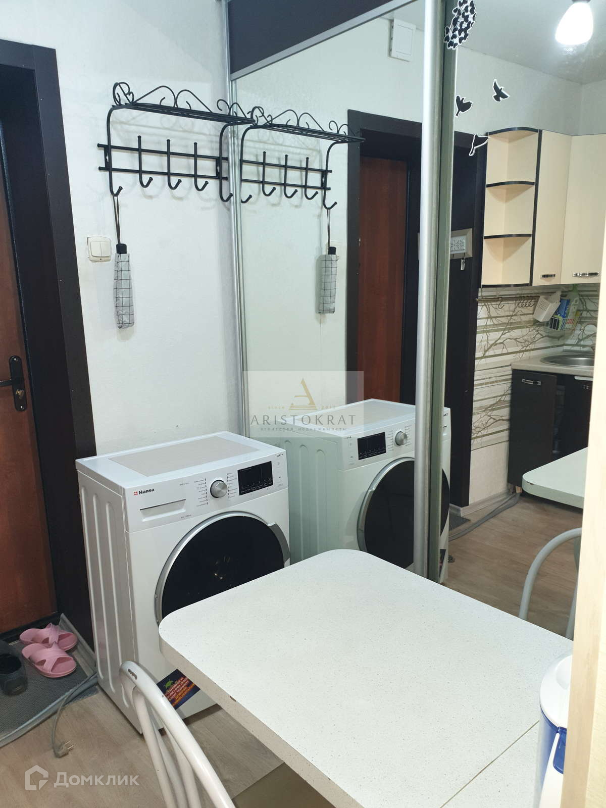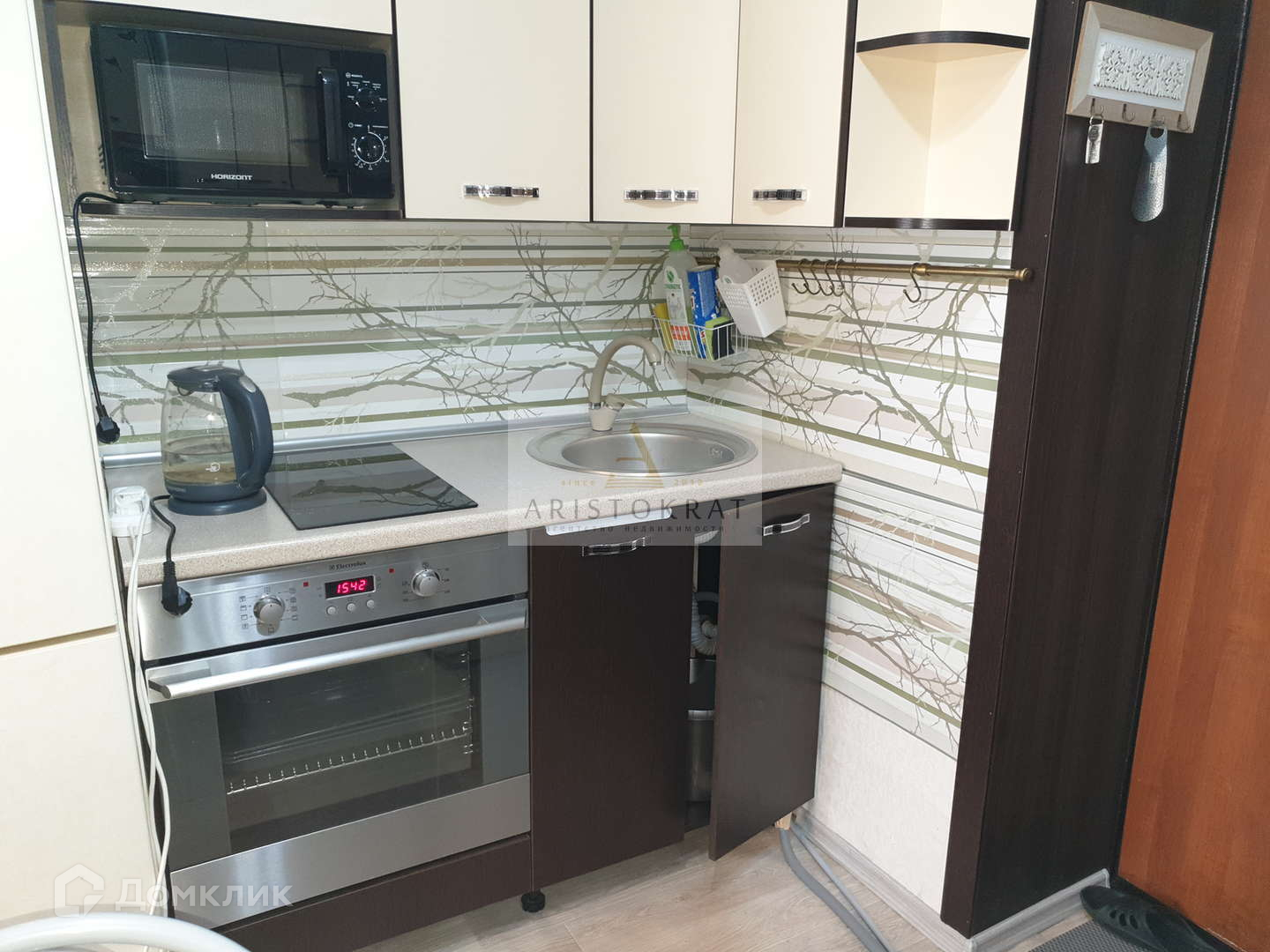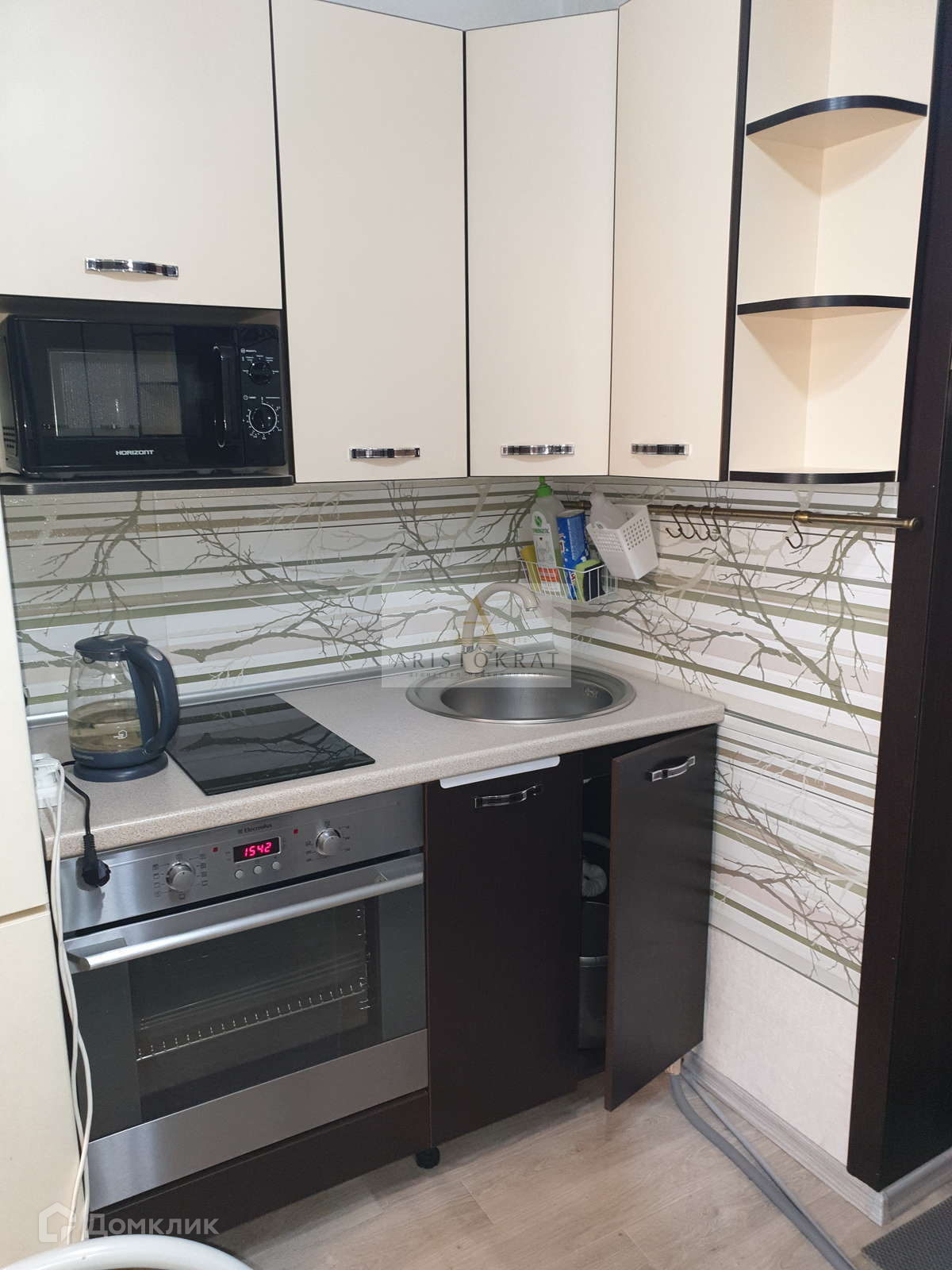 При продаже новым собственникам остаётся кухонный гарнитур с варочной индукционной поверхностью, встроенный функциональный шкаф-купе, кухонный стол со стульями, диван, стенка, настенные полки.