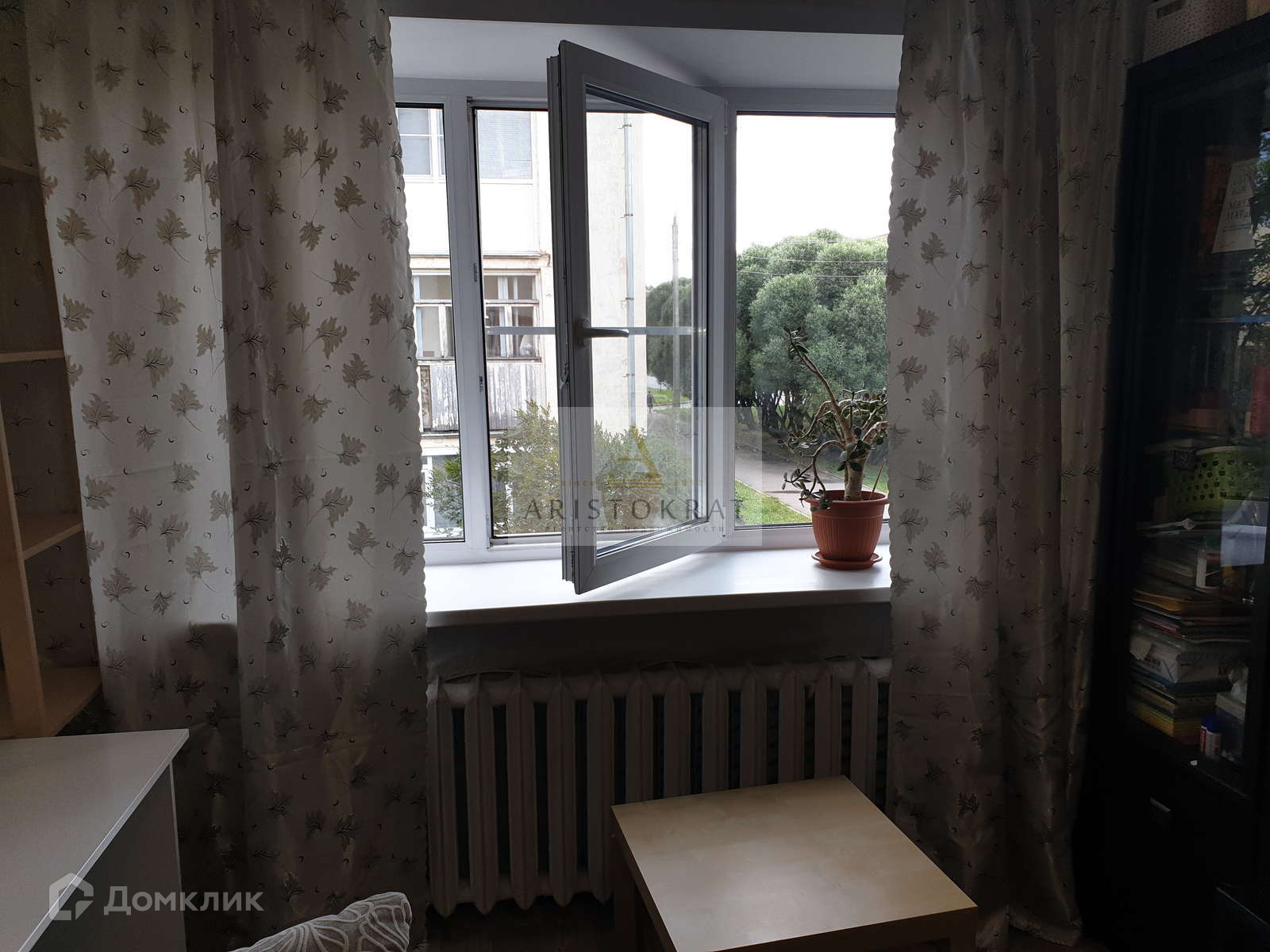 Установлено пластиковое окно, на потолке смонтирован натяжной потолок, установлен карниз для штор.