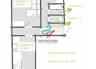 Общая площадь: 45 м2