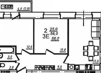 Общая площадь: 58 м2