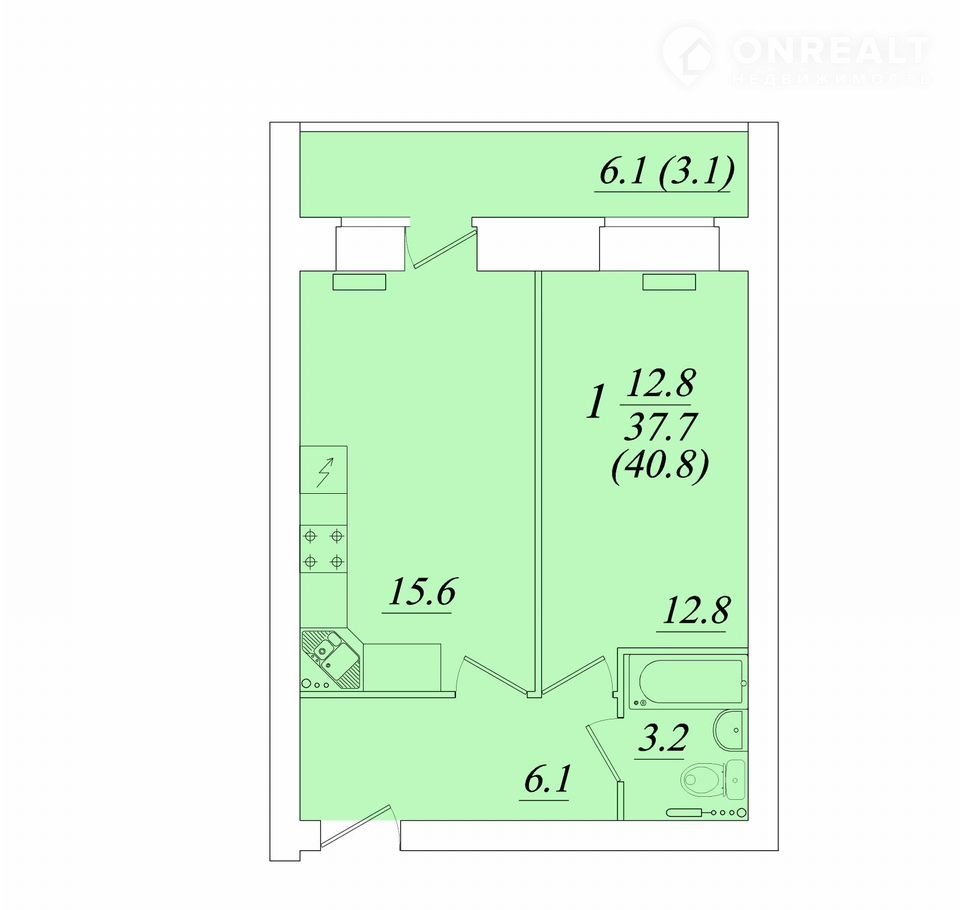 Общая площадь 40.8 м2