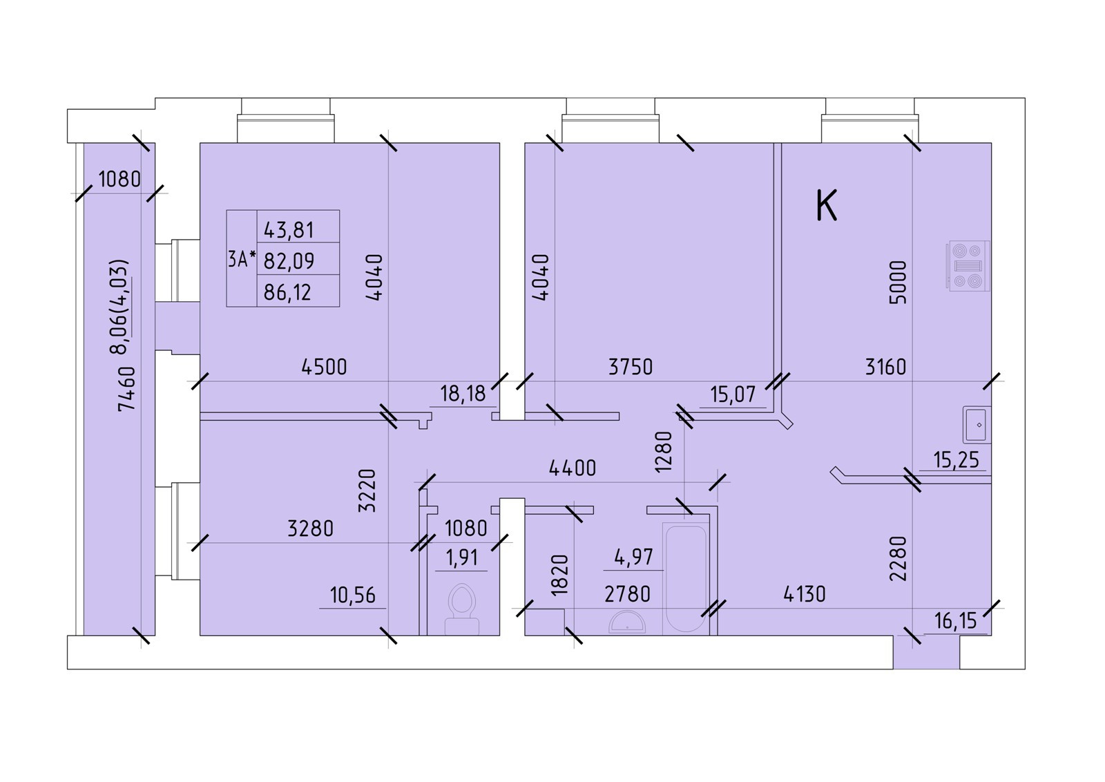 Общая площадь 86 м2