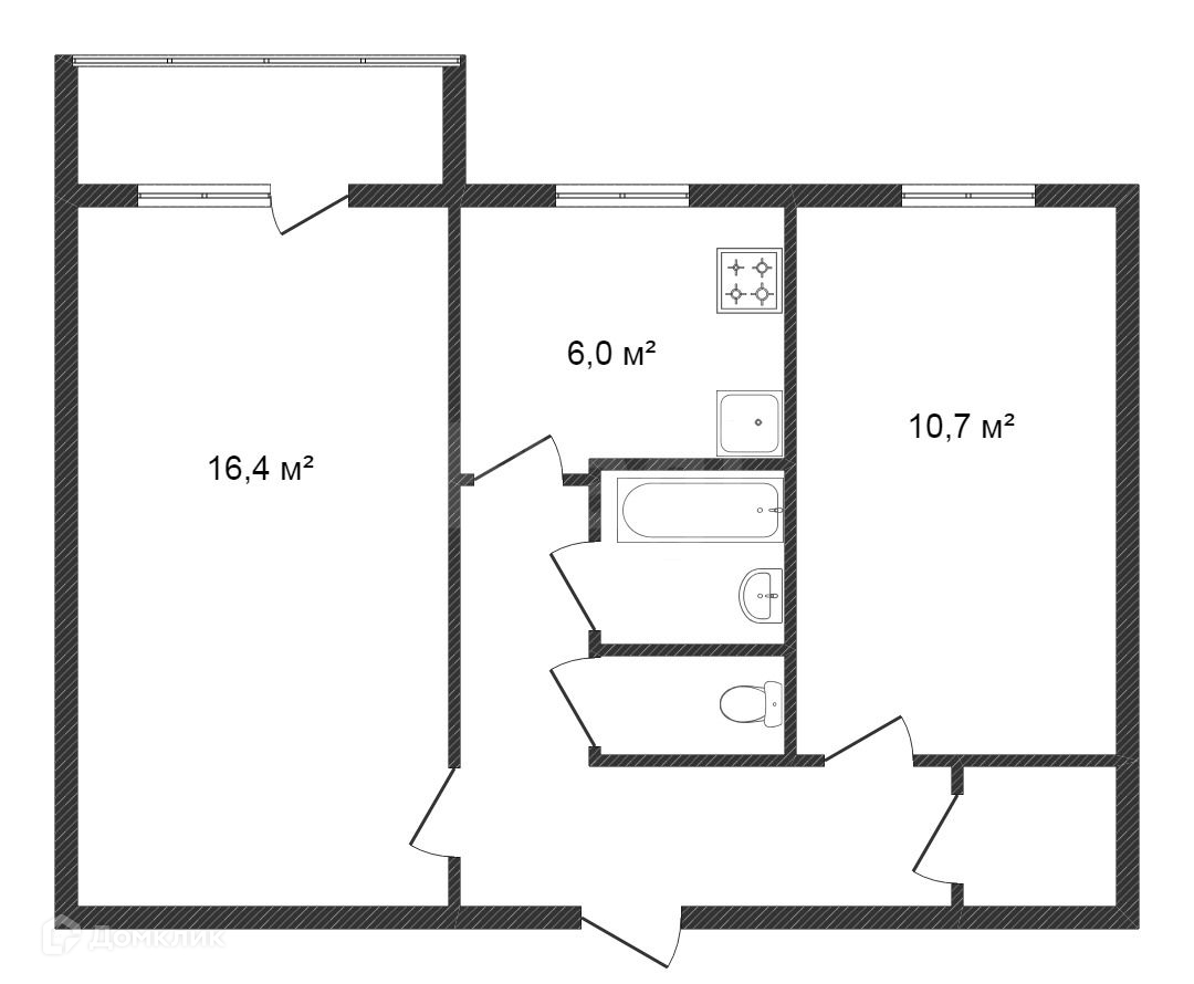 Общая площадь 44.2 м2