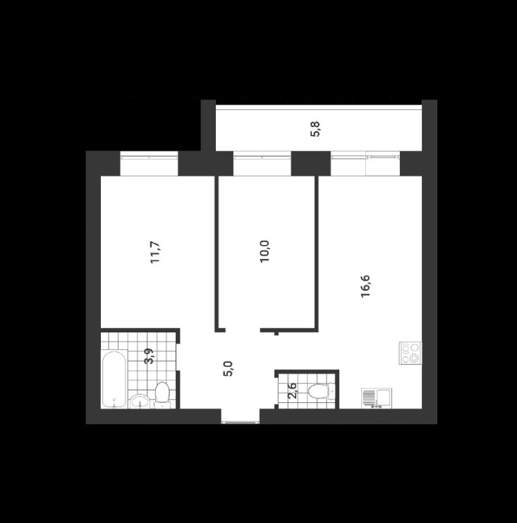Площадь кухни 16.6 м2