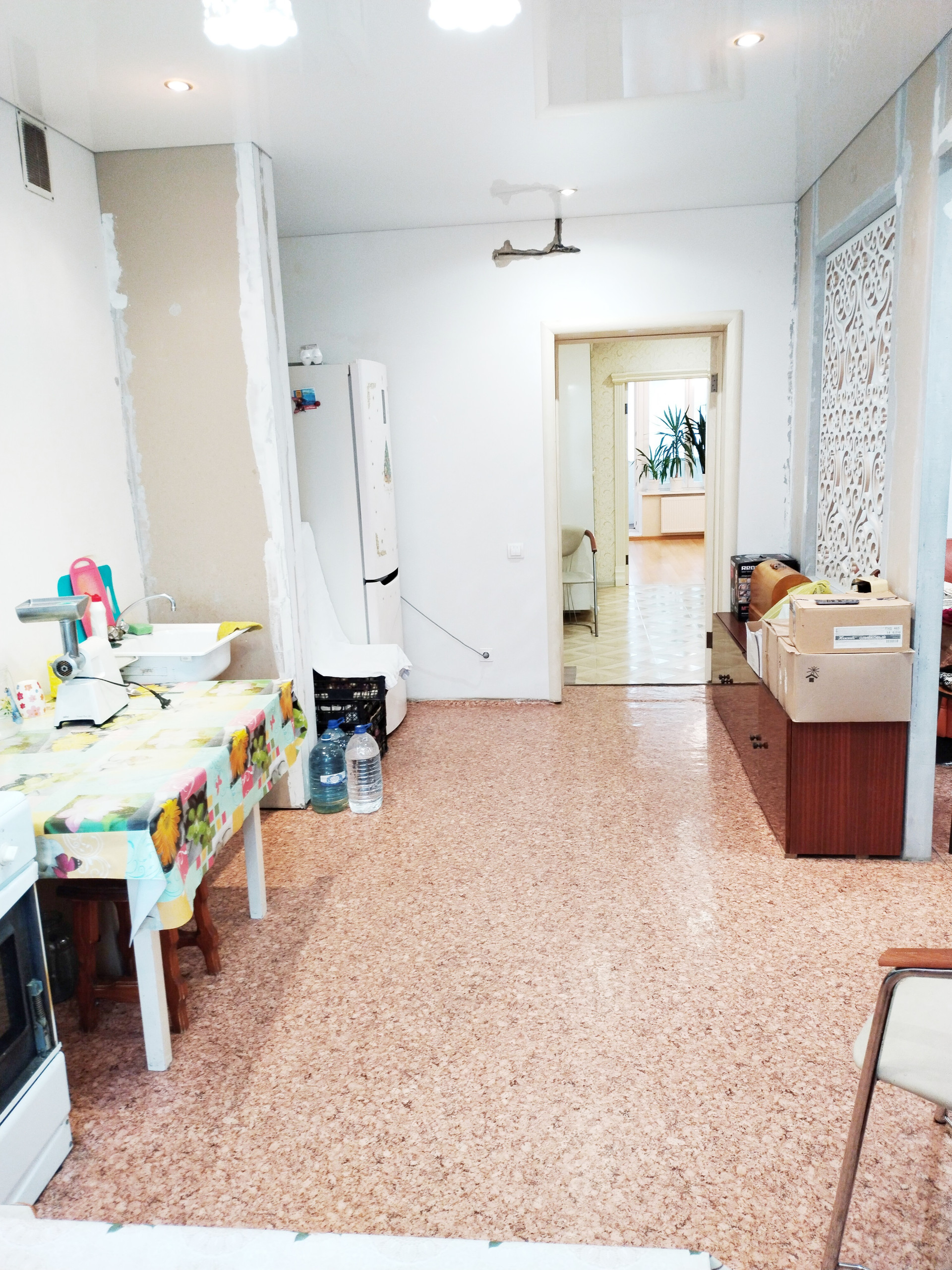 1)ремонт сделан в одной из комнат, прихожей и лоджиях, деревянные стеклопакеты, на 2-х лоджиях установлены так же стеклопакеты (проведён свет и сделаны розетки), хорошие качественные двери натяжные потолки по всей квартире, в квартире на полах ламинат и минолеум; там где ремонт ещё не сделан есть возможность сделать его на свой вкус и из нужных вам метериалов, площадь с лоджиями 82 м2;