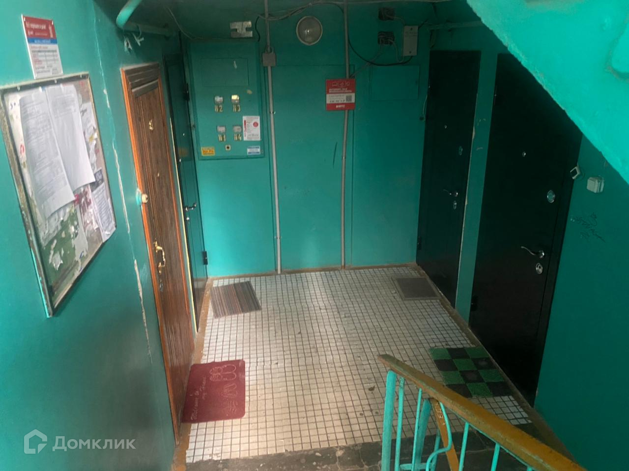 Расположена на 1 этаже 5 этажного панельного дома 1975 года постройки.