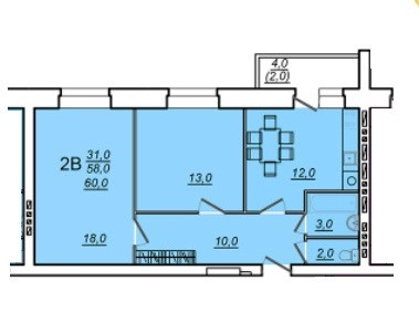 Общая площадь 60 м2