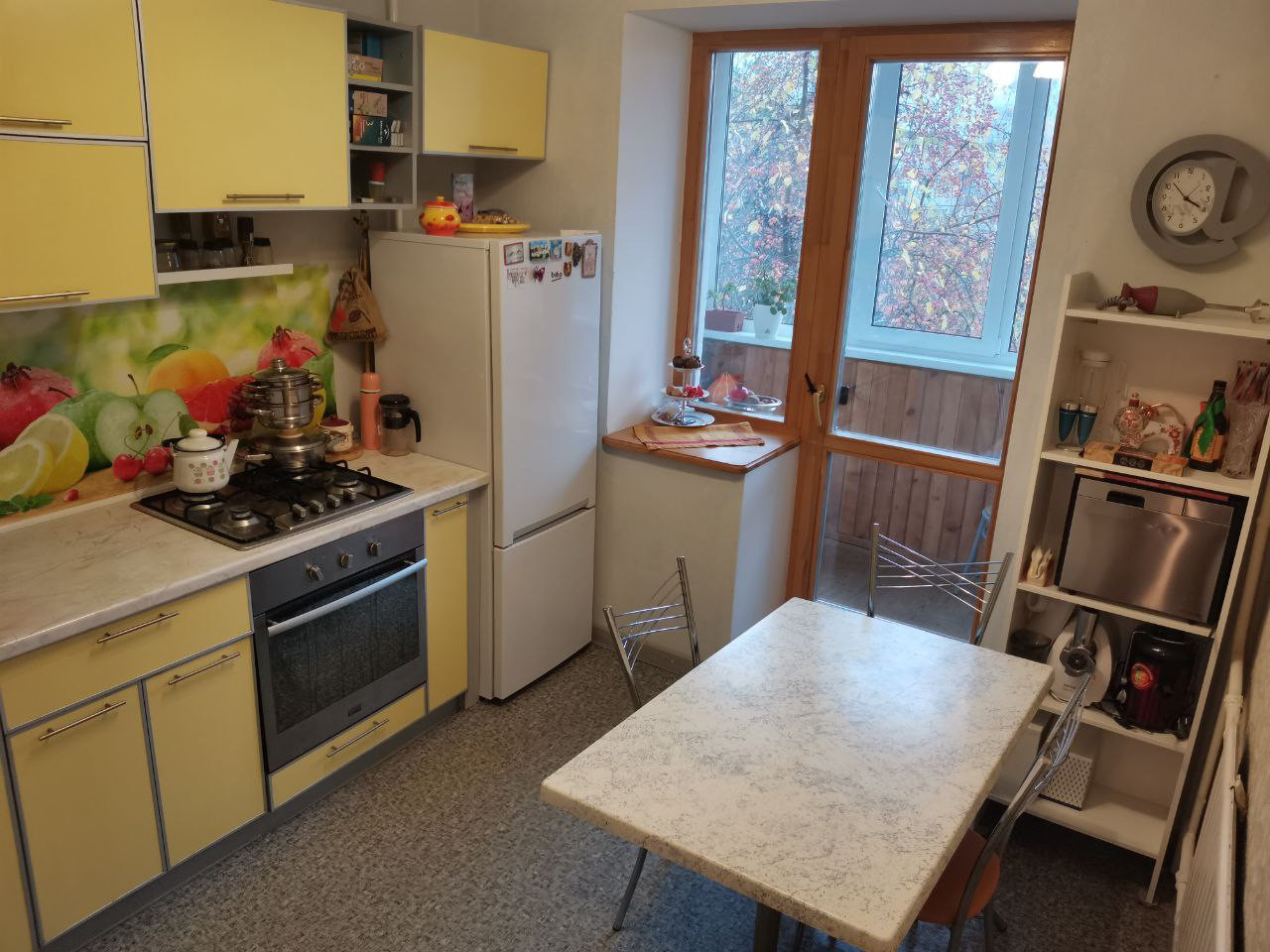 Окно кухни и лоджия входят на северо-восток.