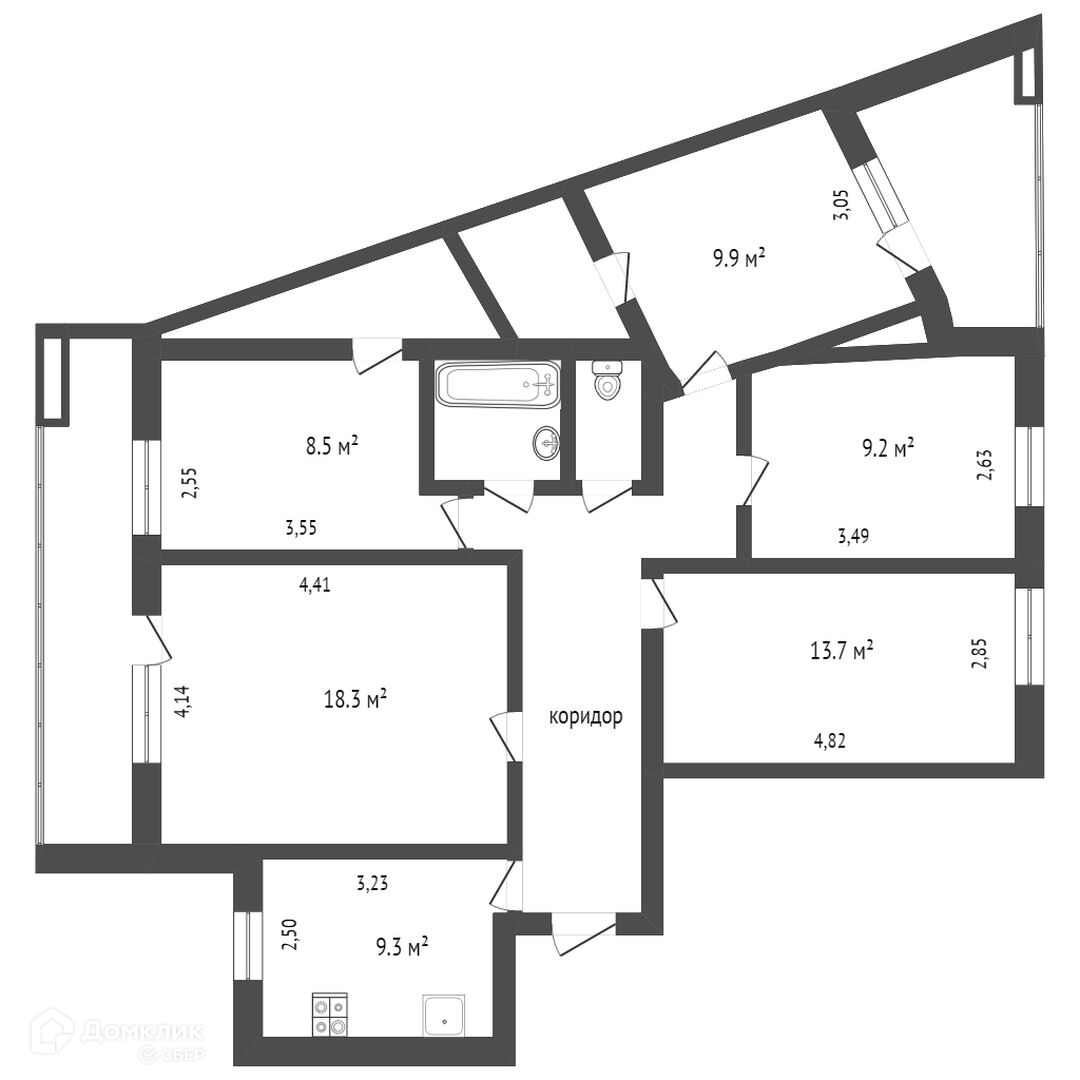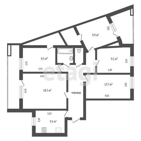 5-комнатная квартира, 96 м2, этаж 8 / 9, на продажу в Вологде, улица Карла Маркса, 117
