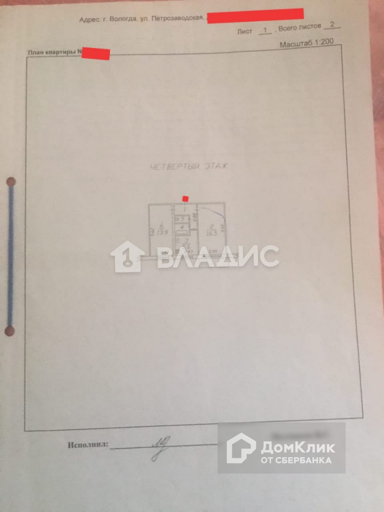 2-комнатная квартира, 44 м2, этаж 4 / 5, на продажу в Вологде, Петрозаводская улица, 26