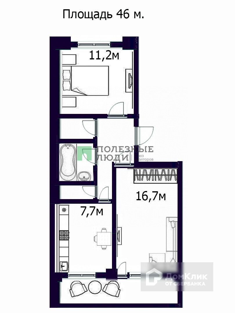 Общая площадь 46 м2