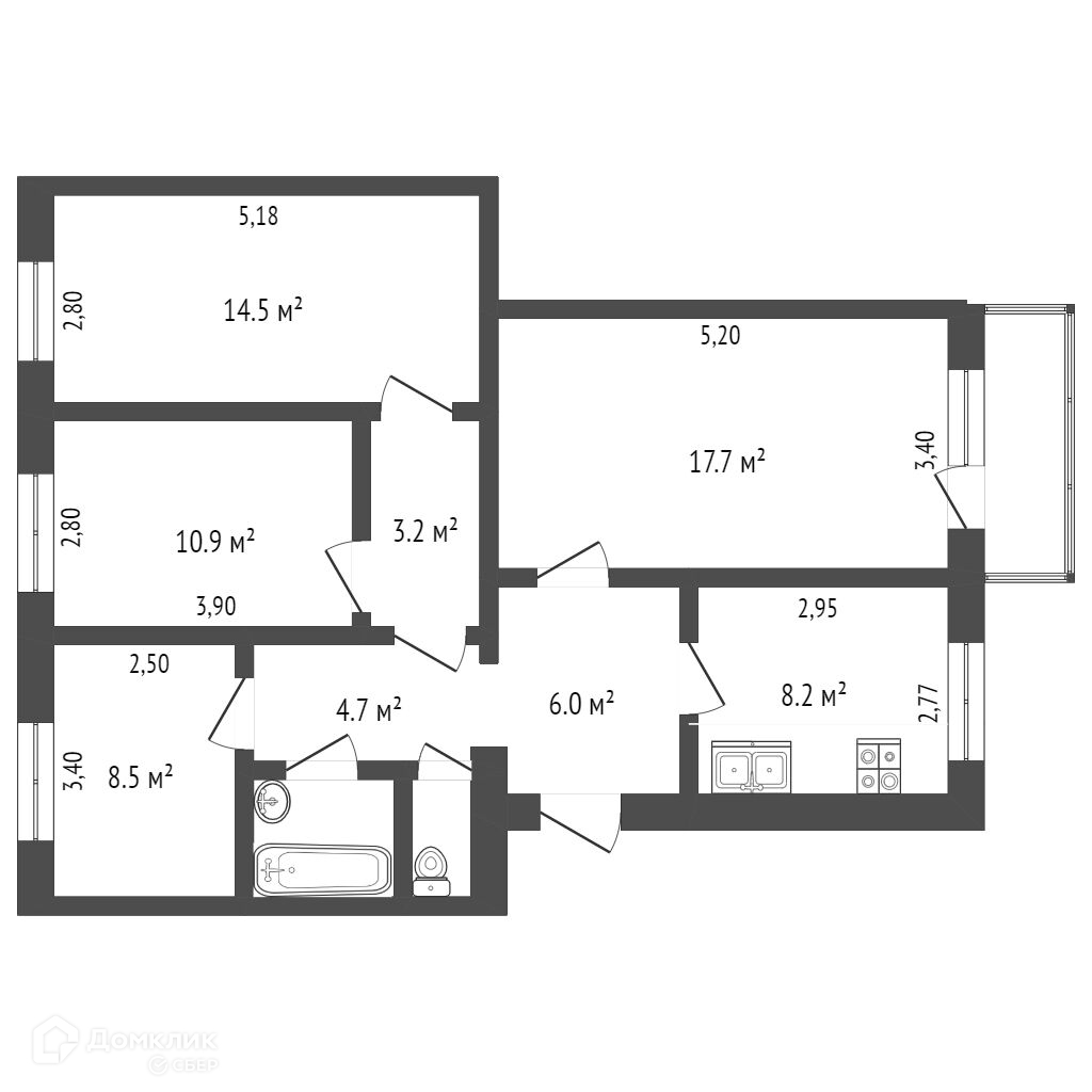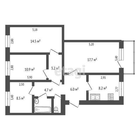 Общая площадь 77.5 м2