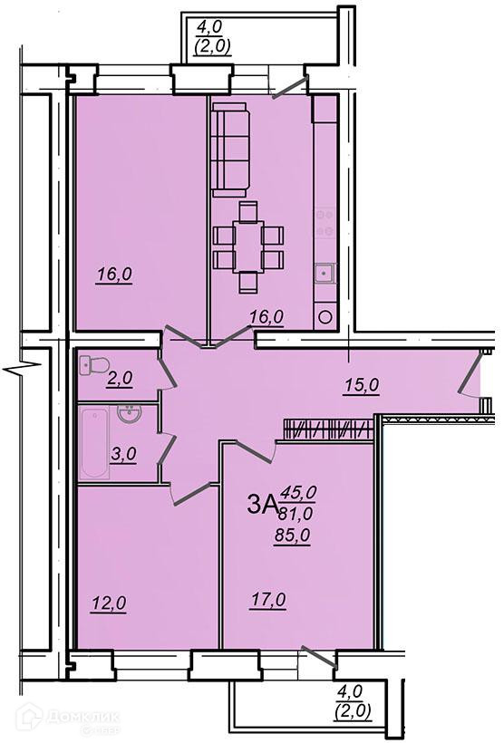 Общая площадь 61 м2