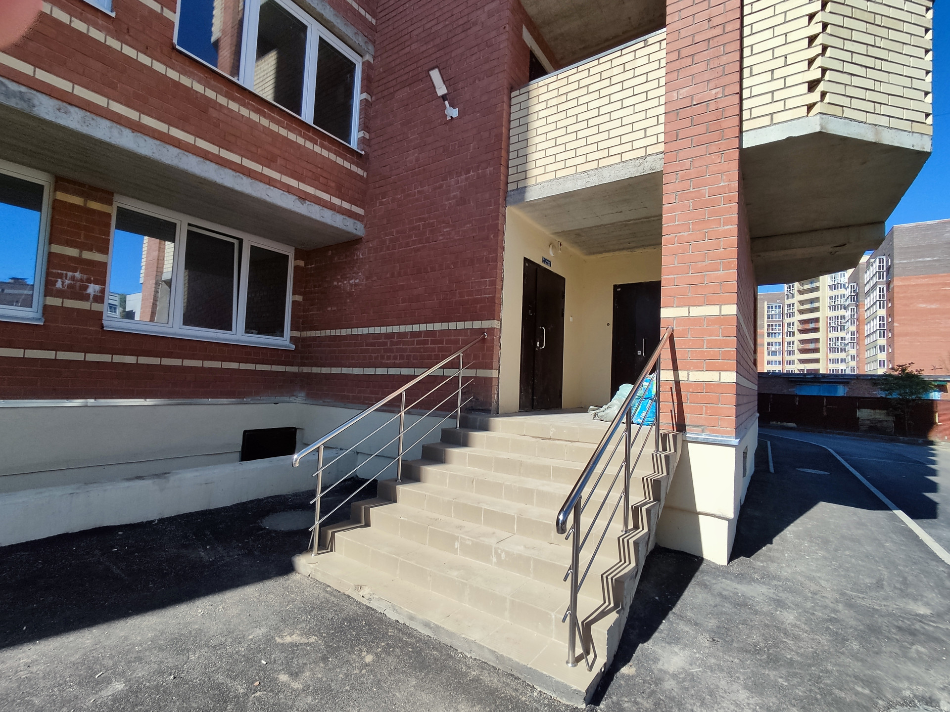 Кирпичный 15-этажный дом, 1 подъезд с выходами во двор и на улицу. 2 грузовых лифта, домофон, качественная антивандальная отделка подъездов (напольная плитка и декоративная штукатурка).