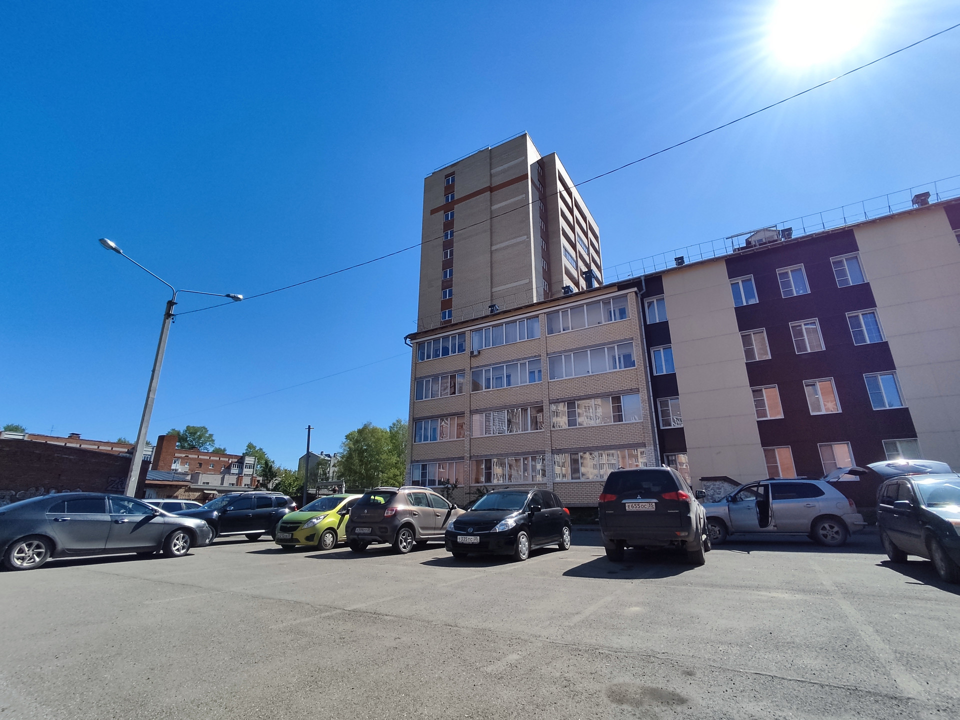 Перед домом большое количество парковочных мест. Даже поздно вечером проблем с парковкой не будет.