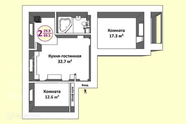 Общая площадь 69.5 м2