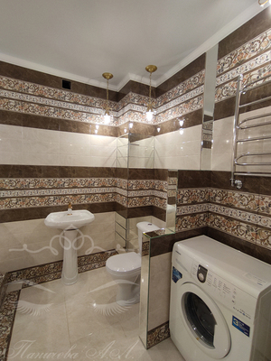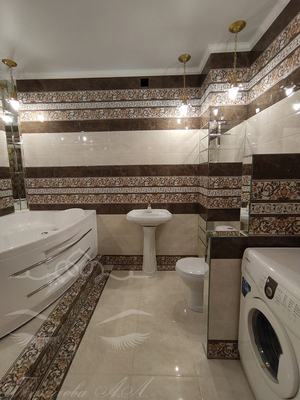 Ванна облицована итальянской плиткой, джакузи с гидромассажем, полы с подогревом.