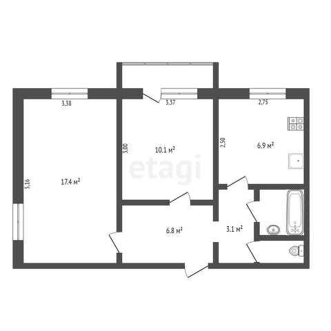 Общая площадь 49.2 м2