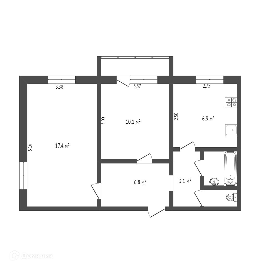 Отличная двухкомнатная квартира с большими комнатами и удобной большой прихожей.