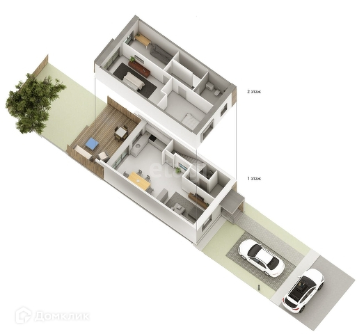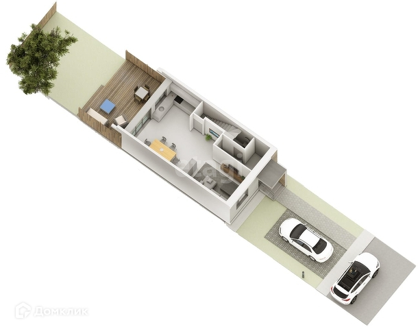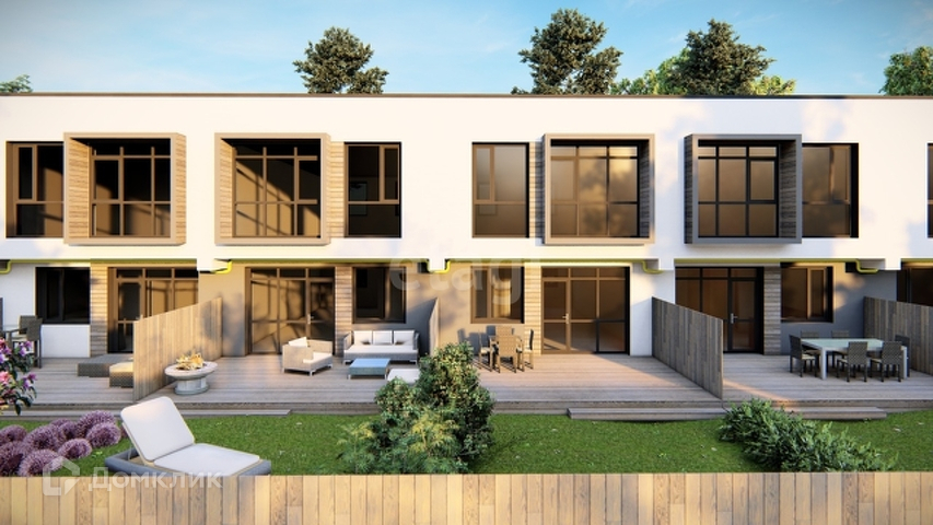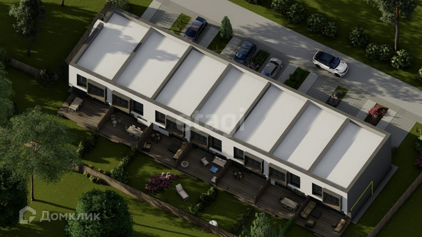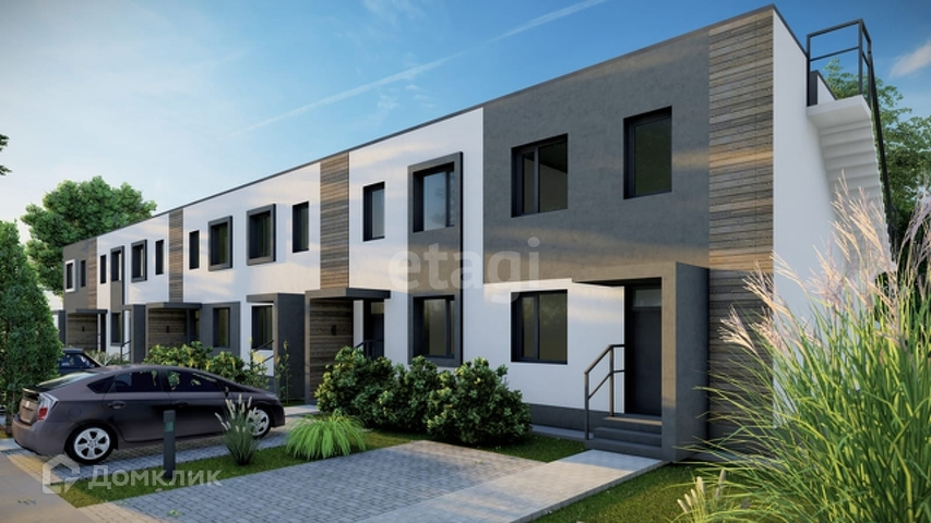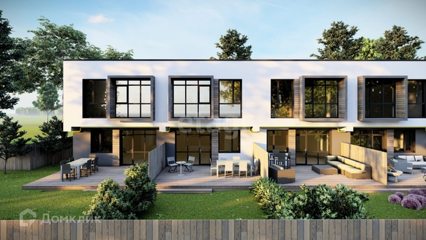 Стильные, качественные входные двери, энергоэффективные панорамные окна, благоустройство территории, терраса и лужайка во дворике, парковка перед домом.