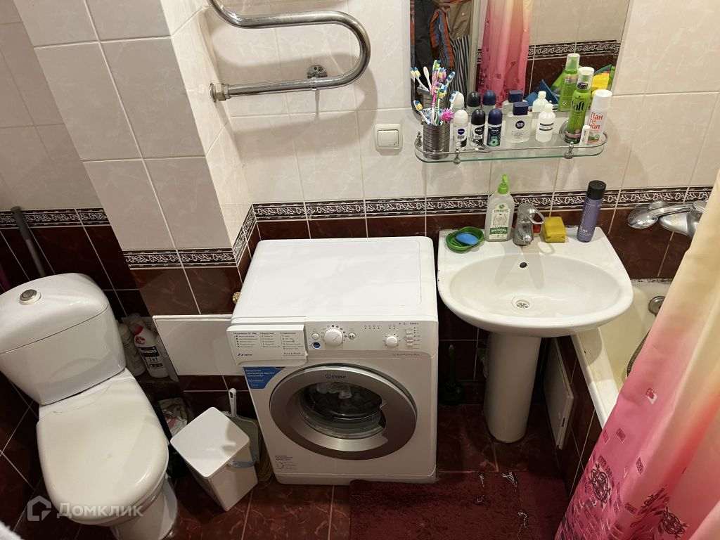 Просторный коридор с местом под шкаф-купе. Ванная комната совмещена с туалетом, место под стиральную машину есть.