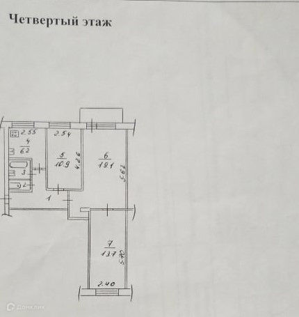 Пластиковые окна и незастекленный балкон, просторные комнаты 11,13,19кв.м.