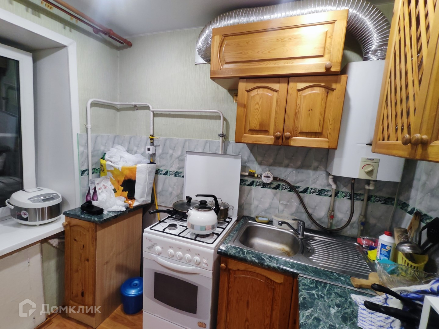 В квартире газовая колонка , это плюс у вас всегда горячая вода , новая газ плита , трубы пластик , новые счетчики воды , газа , электрические .