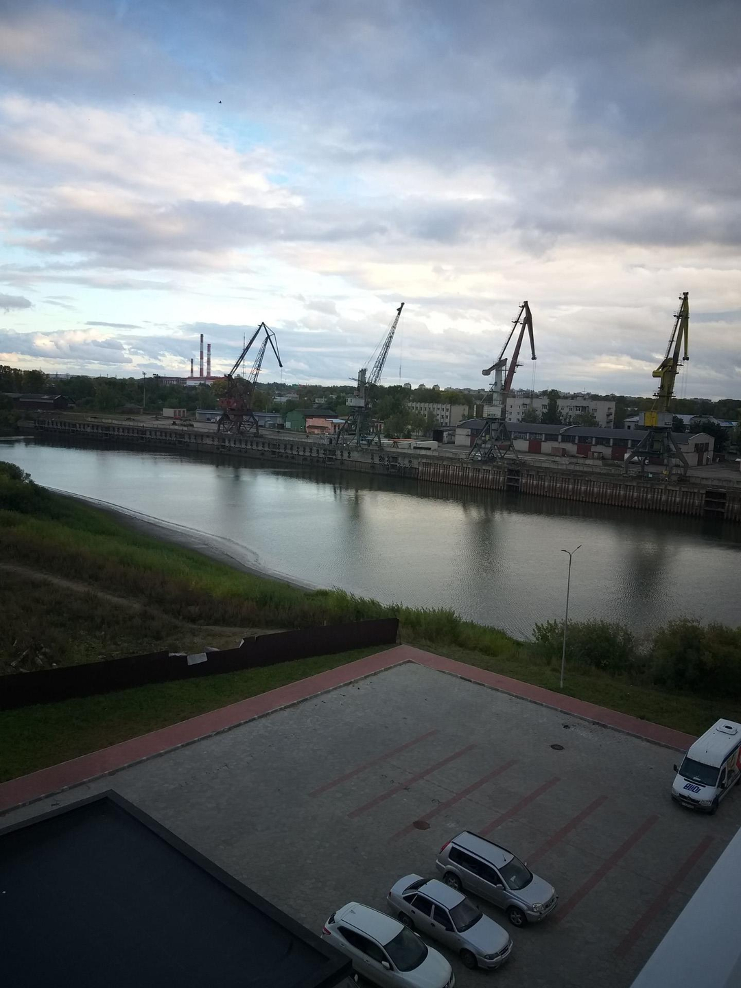 Окна квартиры выходят на две стороны ( на реку Вологда и во двор).