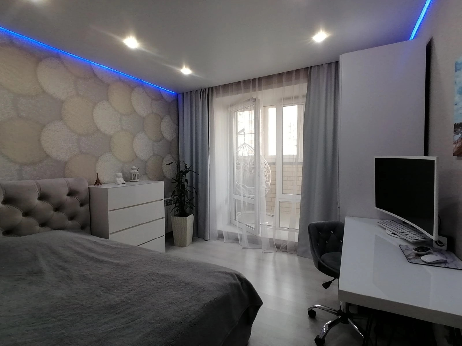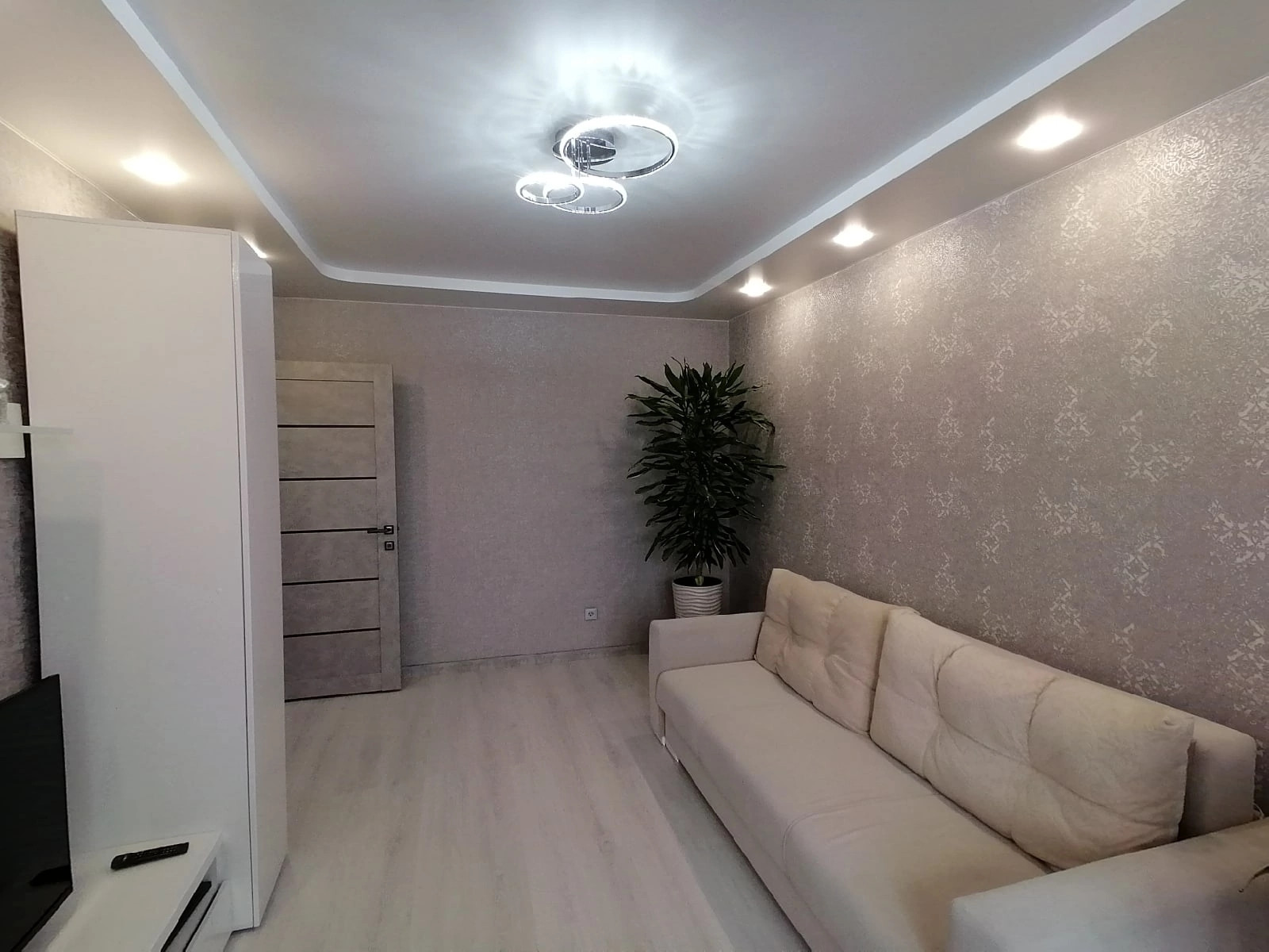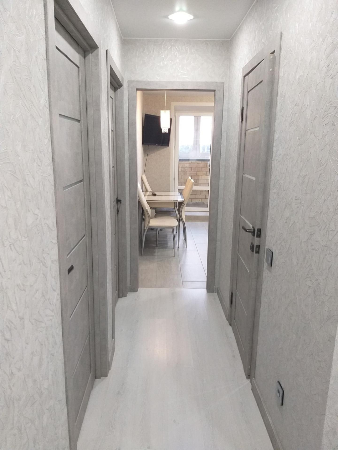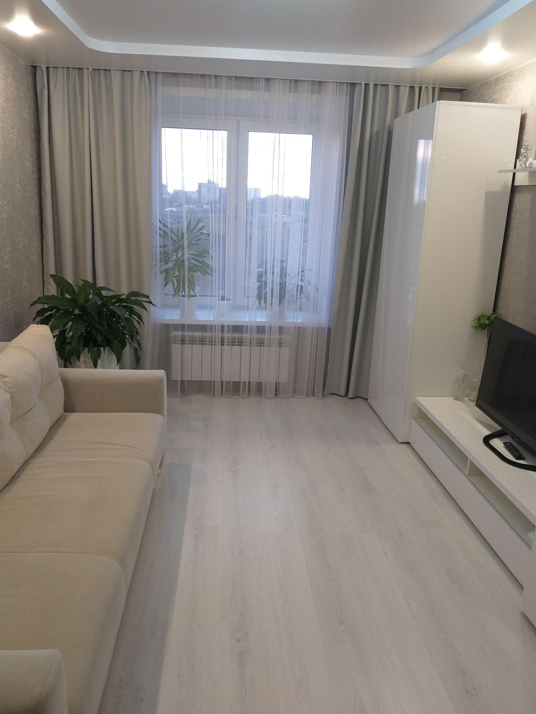 В квартире выполнен качественный ремонт в светлых тонах .