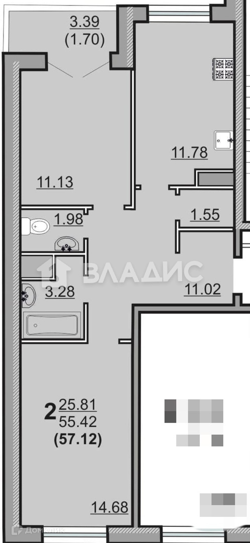 Общая площадь 57.12 м2
