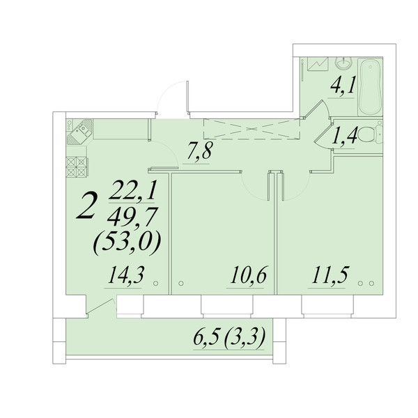 Общая площадь 53 м2