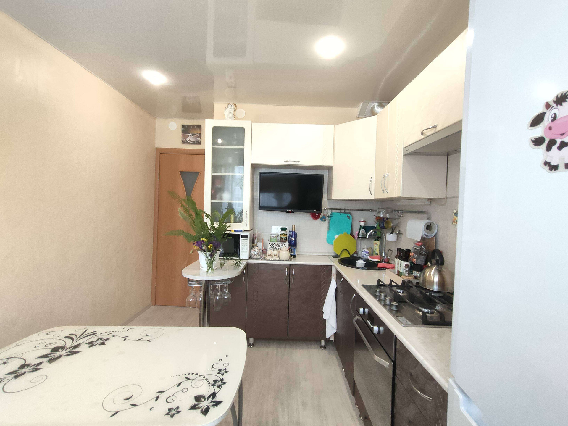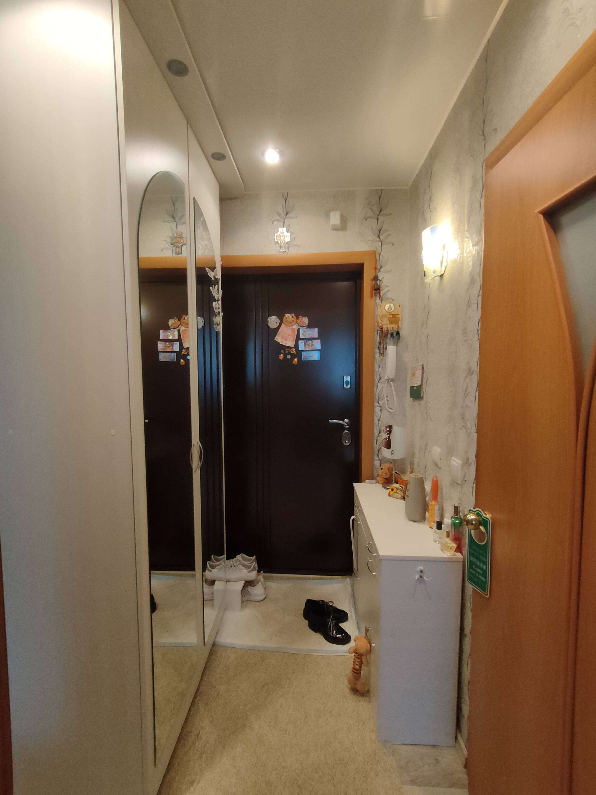 Остается новому хозяину: кухонный гарнитур и вместительный шкаф в комнате.