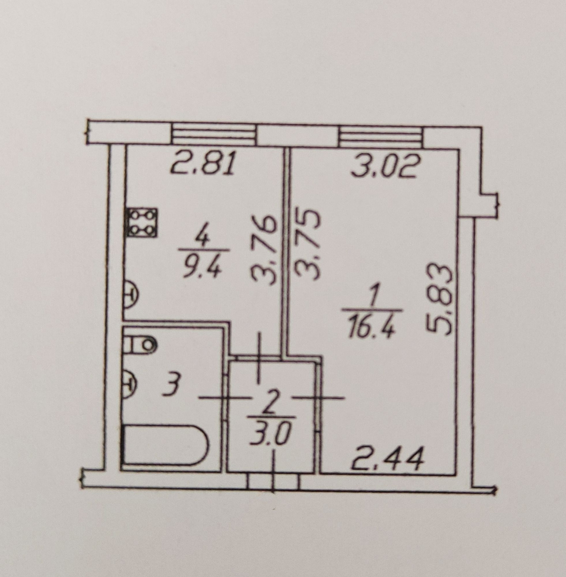 Общая площадь 34.4 м2