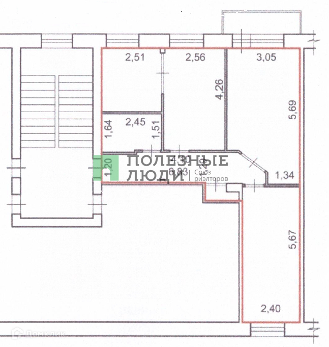 Жилая площадь 40.9 м2