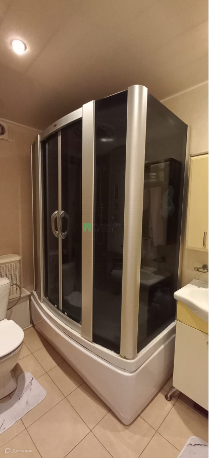 В ванной комнате поставлена большая душевая кабинка с гидромассажем.