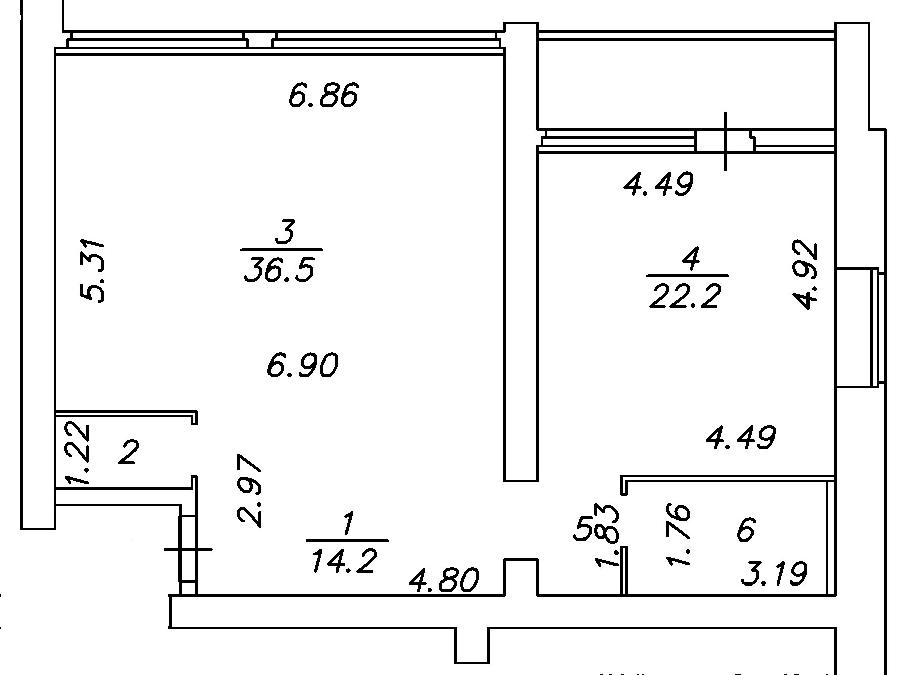 Балкон, лоджия 1 балкон
