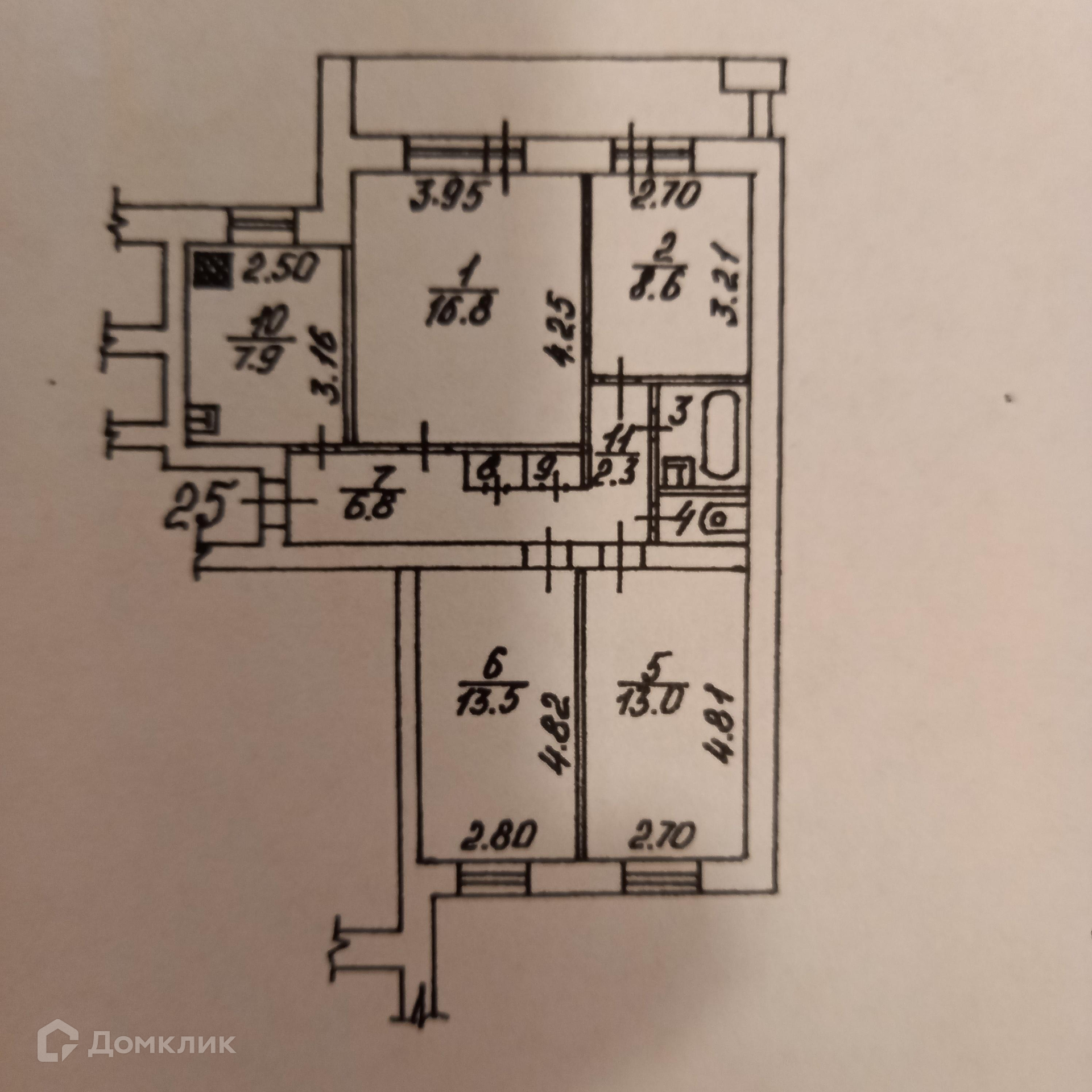Жилая площадь 51.9 кв.м, кухня 7.9 кв.м. Площадь комнат: 16.8/13.0/13.3/8.6 м2, типовой ремонт, комнаты изолированные. Квартира меблированная, интернет. Раздельных санузлов - 2.