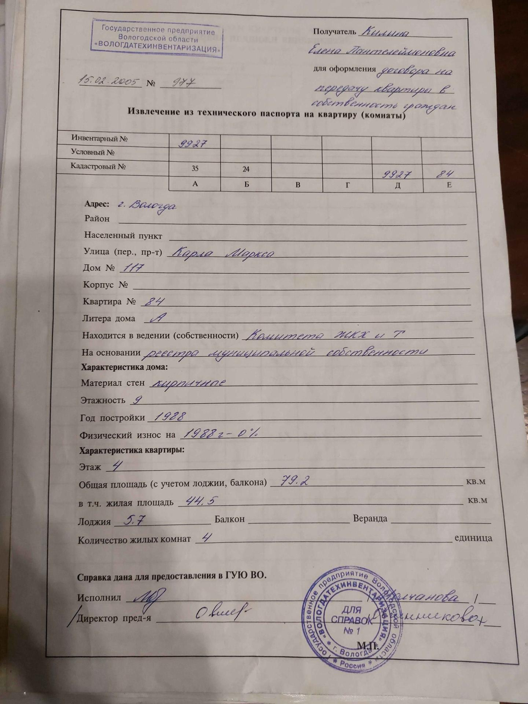 4-комнатная квартира, 79 м2, этаж 4 / 9, на продажу в Вологде, улица Карла Маркса, 117